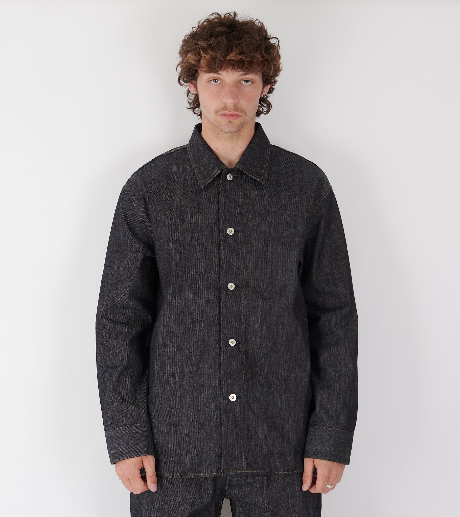 Skjorte i en stiv 'rigid' bomuldsdenim fra Jil Sander.