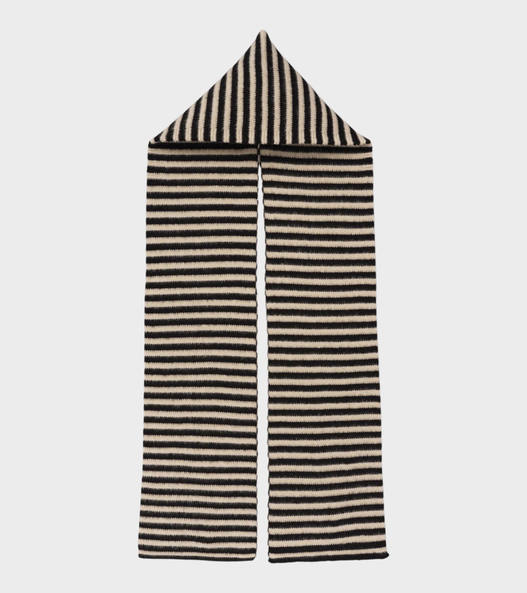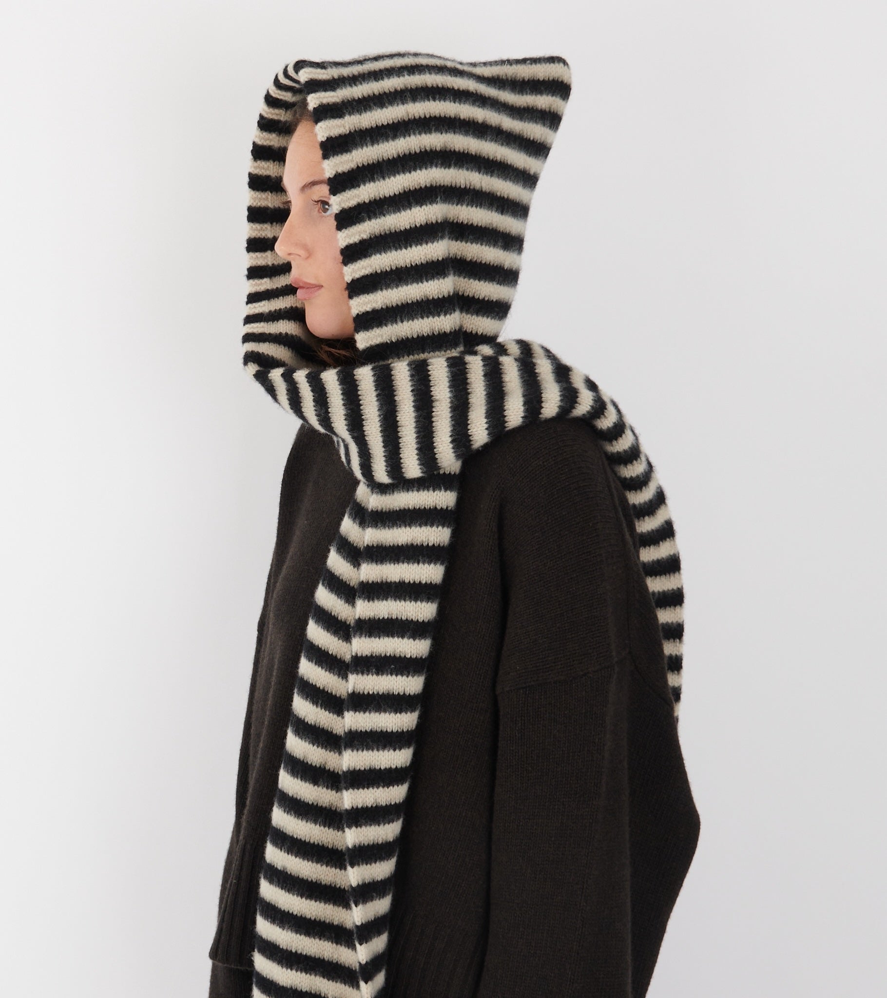 Model: Striped Brushed Hood Scarf Black/Oatmeal