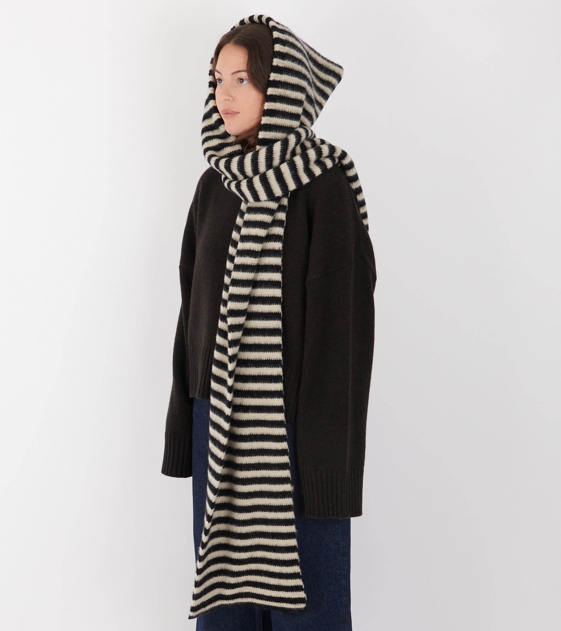 Stort stribet tørklæde med hætte fra Jo Gordon.