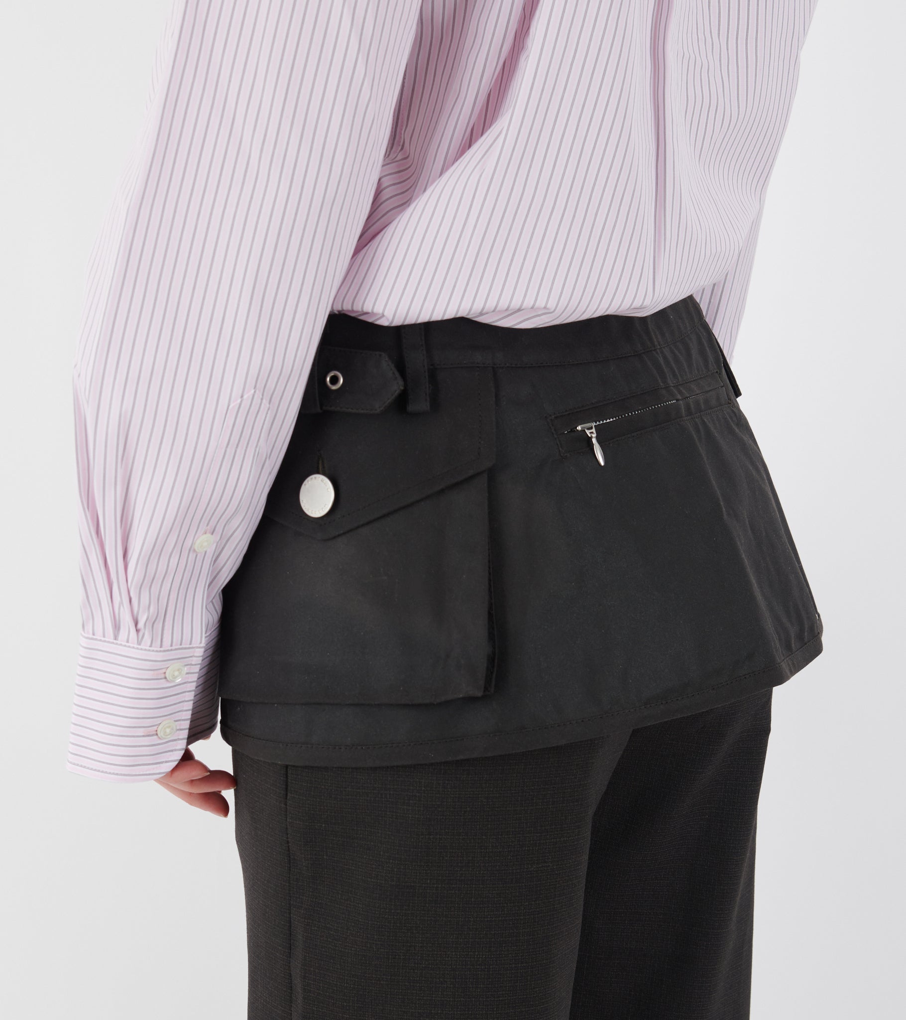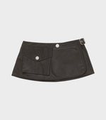 Mørkebrun belt bag i bomulds-oilskin fra Kernemilk. Tasken har en justerbar bæltelukning, sølv hardware og er detaljeret med lommer på begge sider.