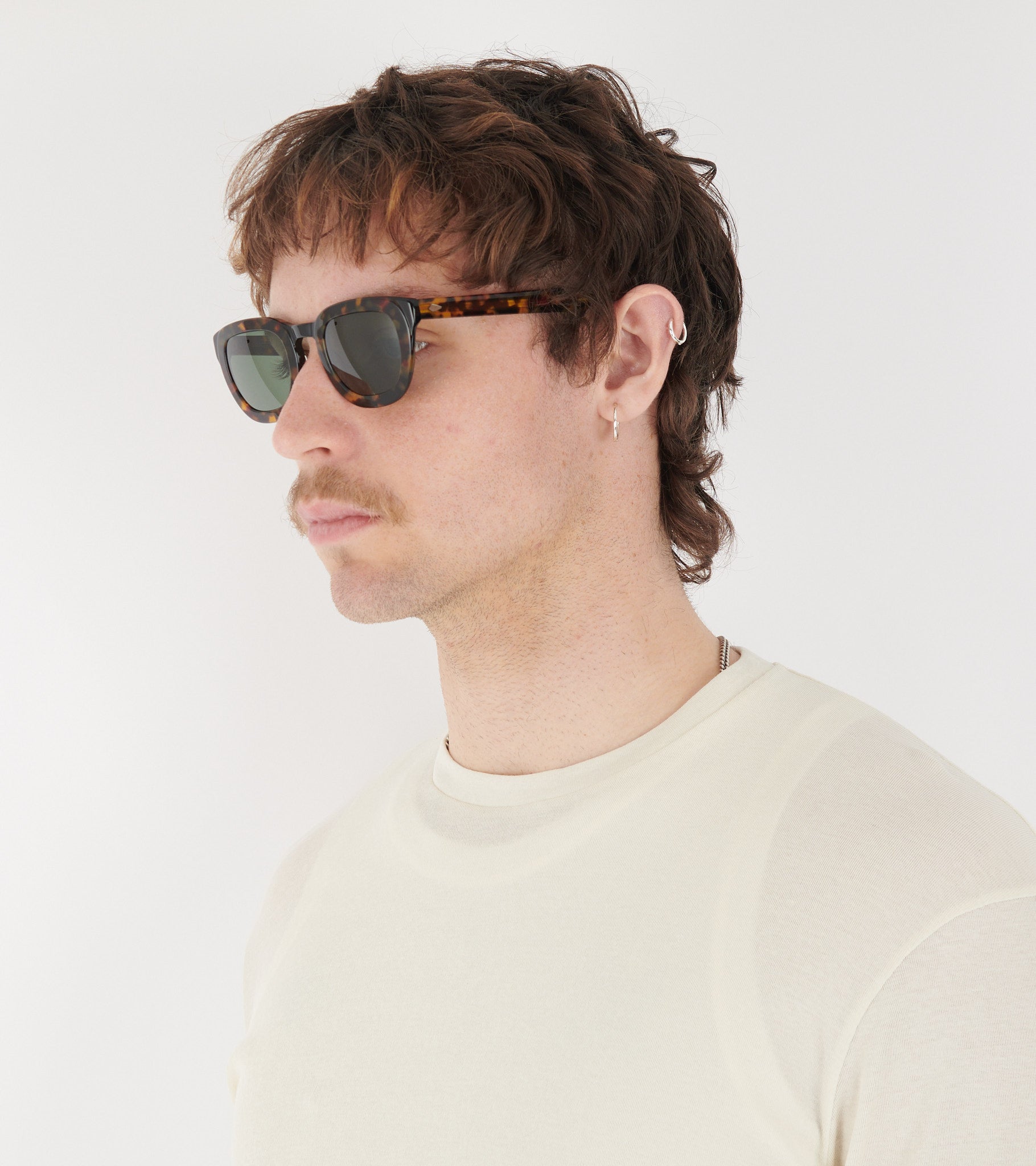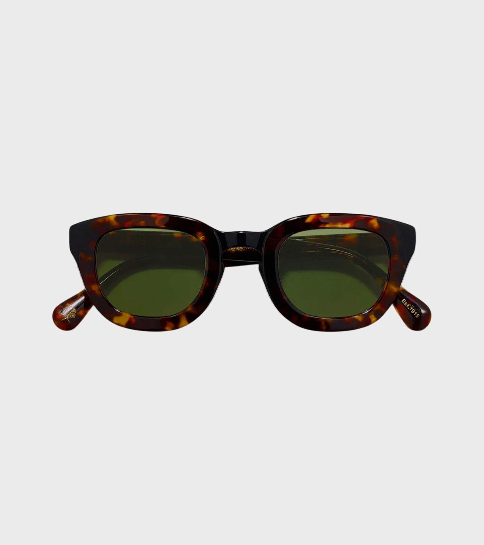 Telena Sun fra Moscot - denne version har brunt chunky 'tortoise' stel og mørkt glas.