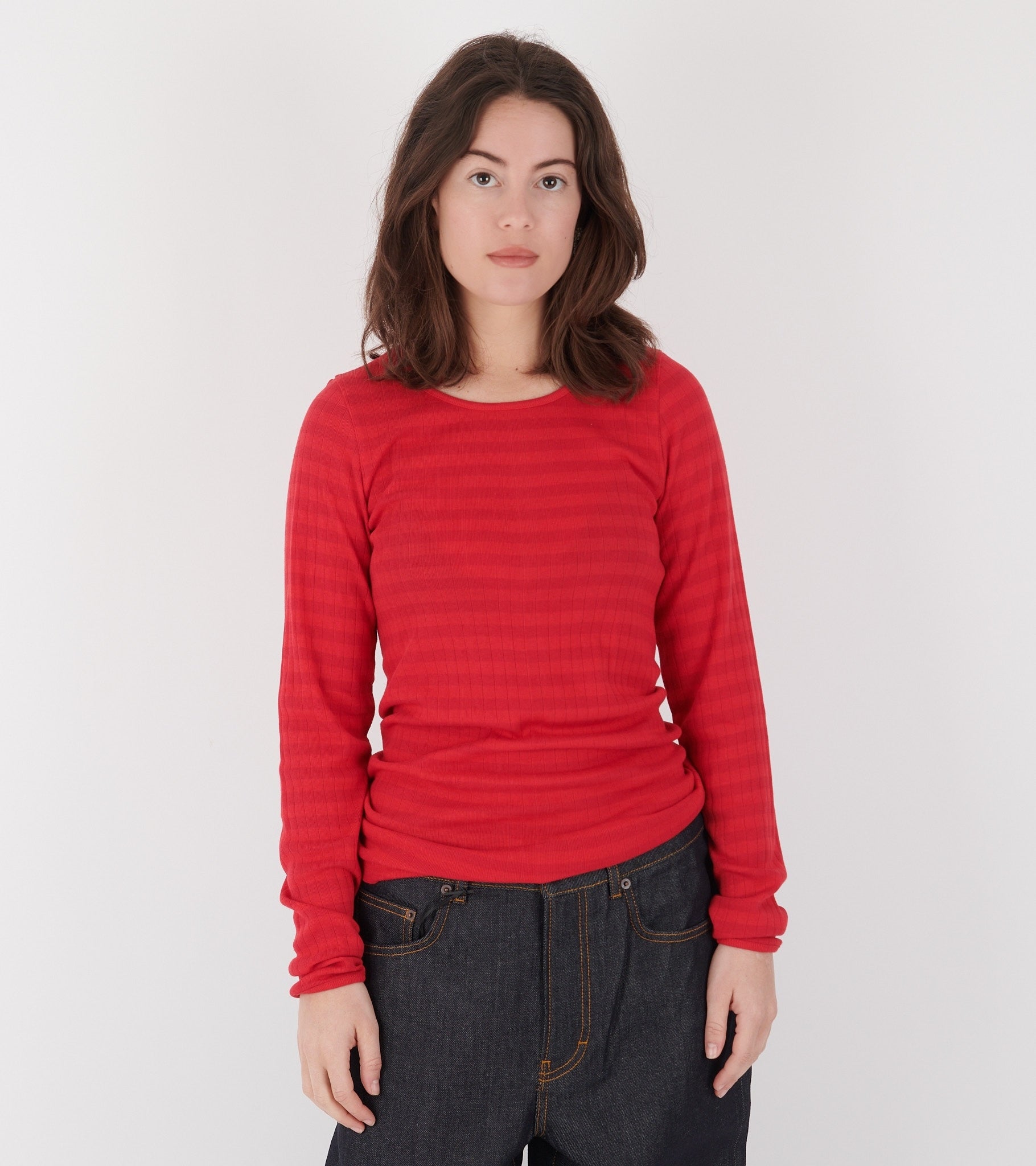 Den ikoniske 101 Rib tee fra Nørgaard Paa Strøget. Kendt for at give "Byens Bedste Bryster". Ribberne er one size og når du først har købt en, må du eje flere! Et must-have i din garderobe. Denne model er almindelig i længden.