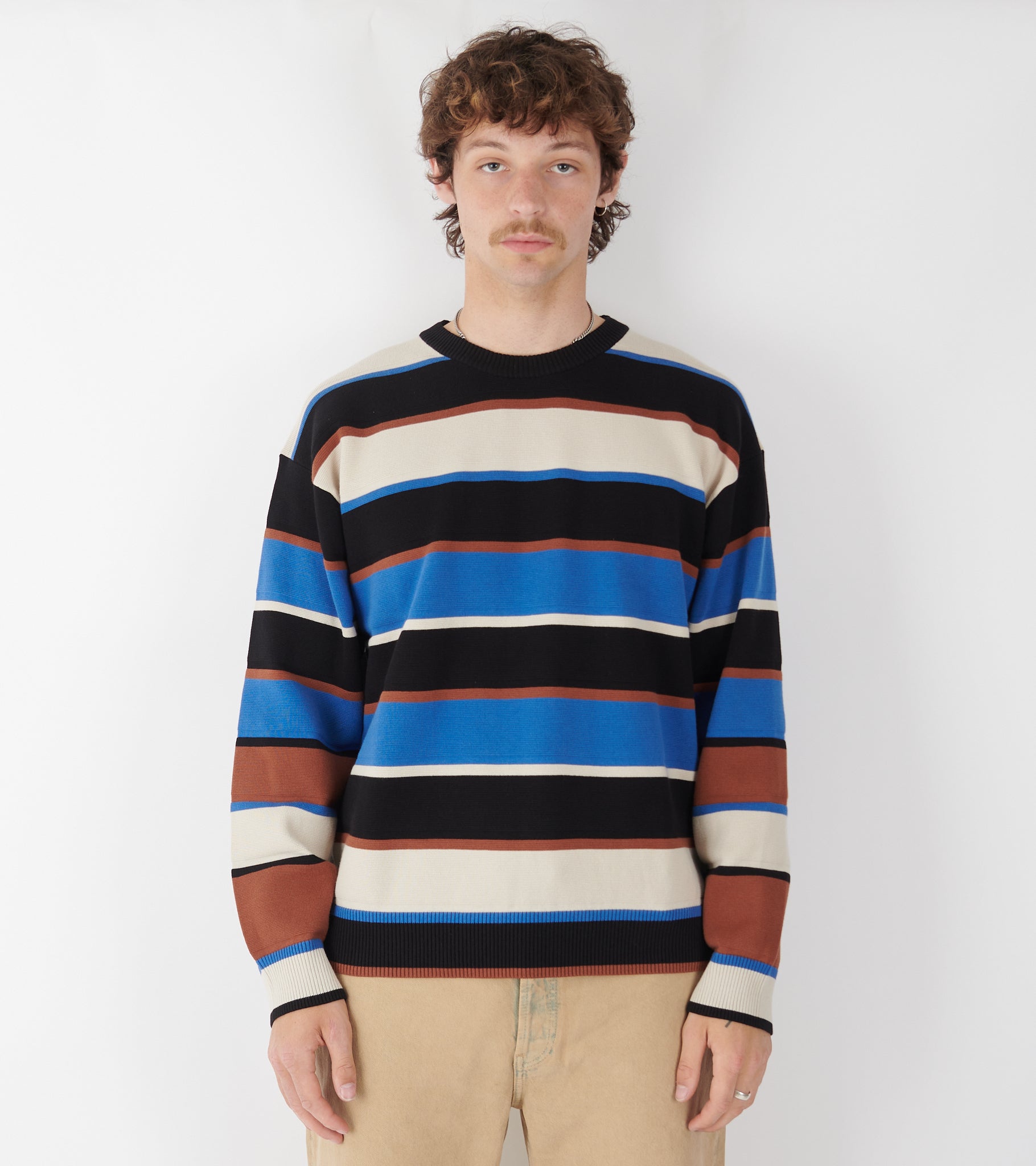 Striped Crewneck Sweater Blue/Brown Mix