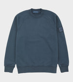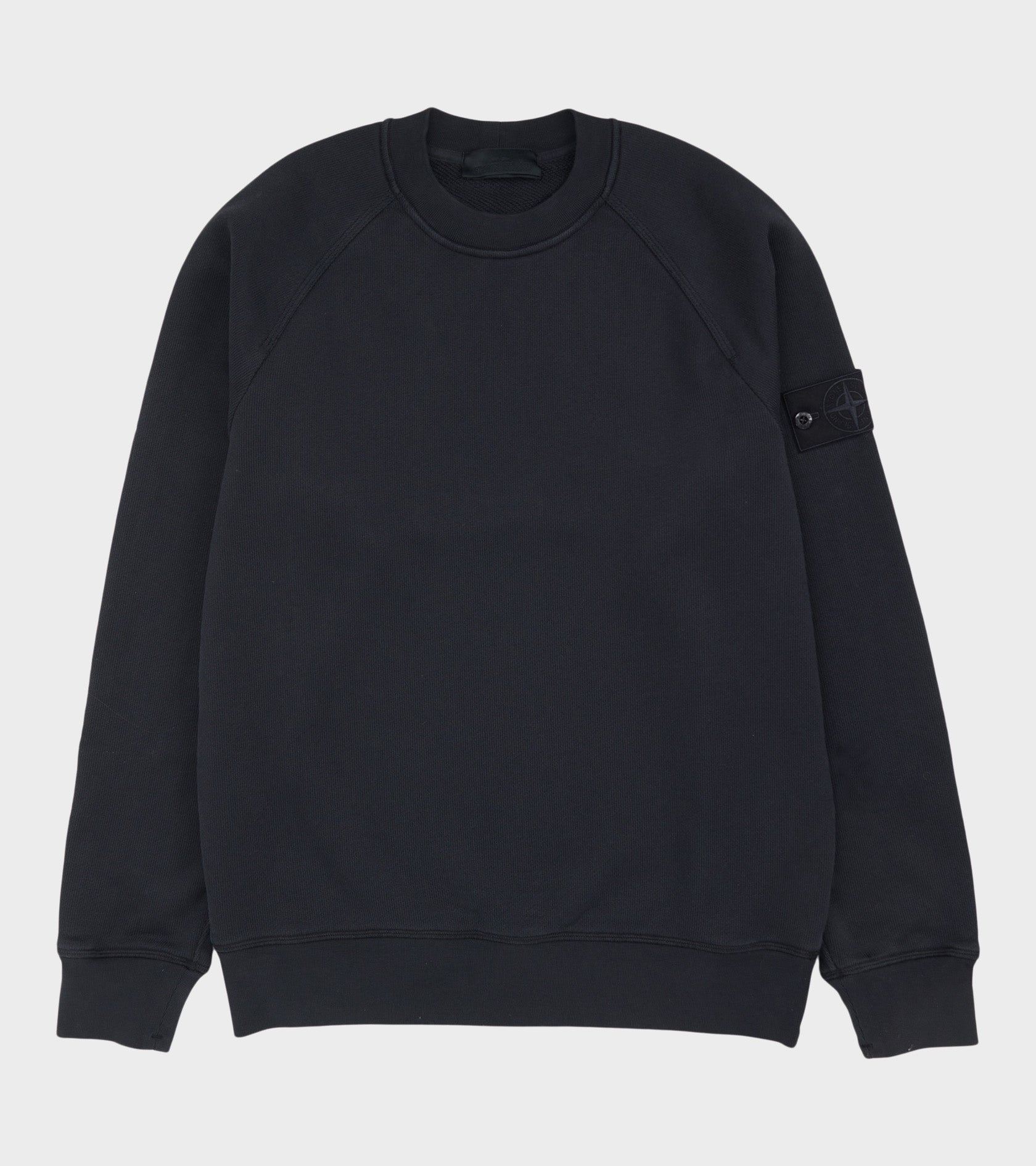 Navy sweatshirt fra Stone Island. På venstre ærme er det ikoniske Stone Patch i den særlige tone-i-tone Ghost-version.