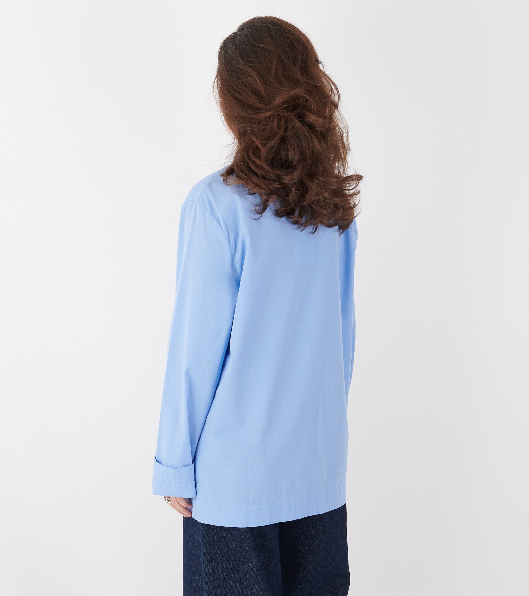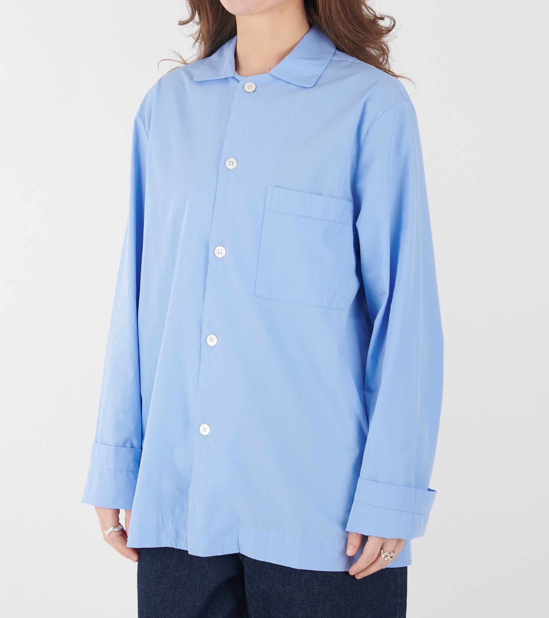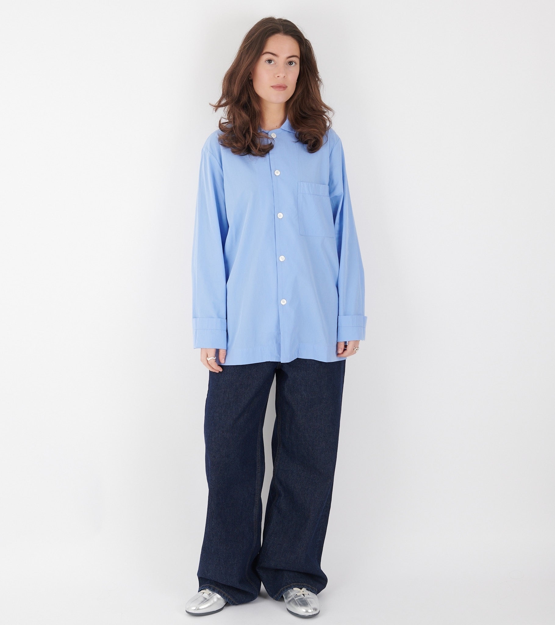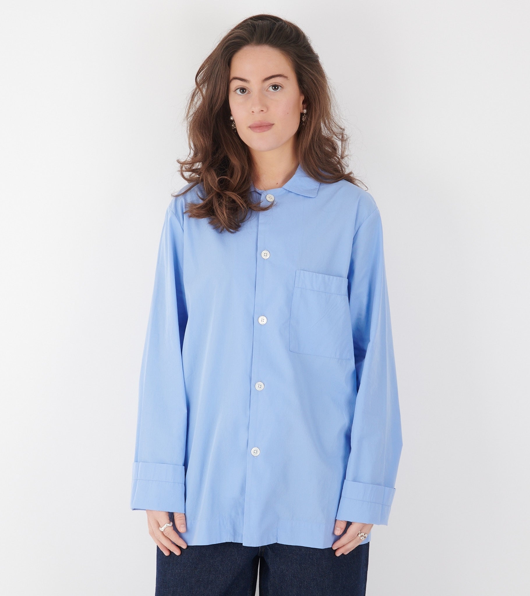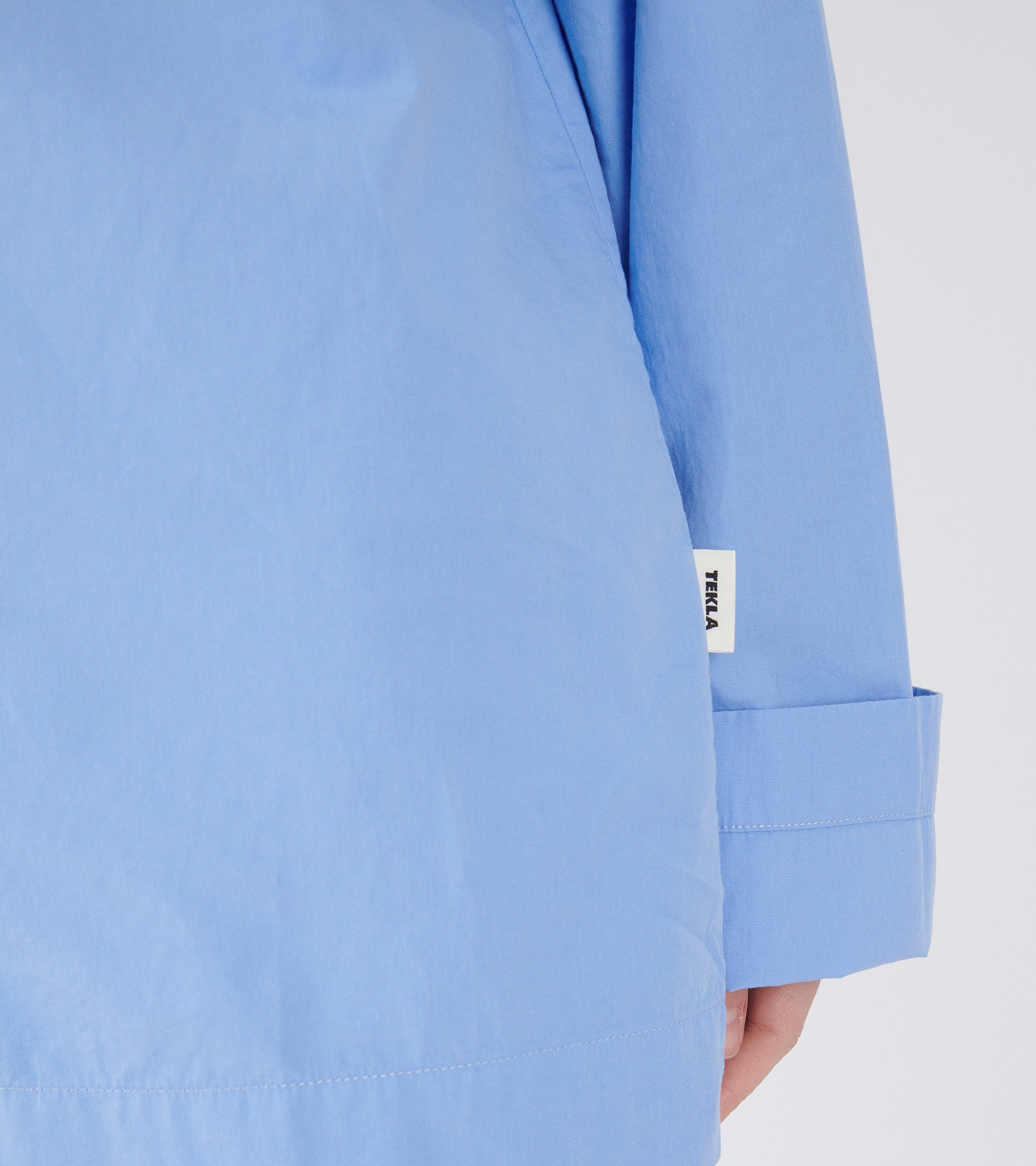 Unisex sleepwear fra Tekla i farven 'Cornflower Blue'. Alt sleepwear er lavet i økologisk bomuld og blevet produceret i Portugal. Skjorten har knaplukning og en lomme ved venstre bryst. I siden er et logotag.