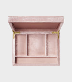 Velour smykkeskrin fra Sophie Bille Brahe. Smykkeskrinet kan bruges til opbevaring af dine smykker og har fire rum, så du nemt kan organisere og adskille dine smykker. Dette smykkeskrin er fremstillet i en lyserød farve, men findes i flere forskellige farver.