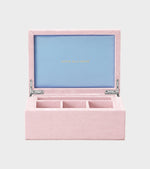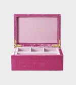 Velour smykkeskrin fra Sophie Bille Brahe. Smykkeskrinet kan bruges til opbevaring af dine smykker og har fire rum øverst samt et stort rum under, så du nemt kan organisere og adskille dine smykker. Dette smykkeskrin er fremstillet i en pink farve.