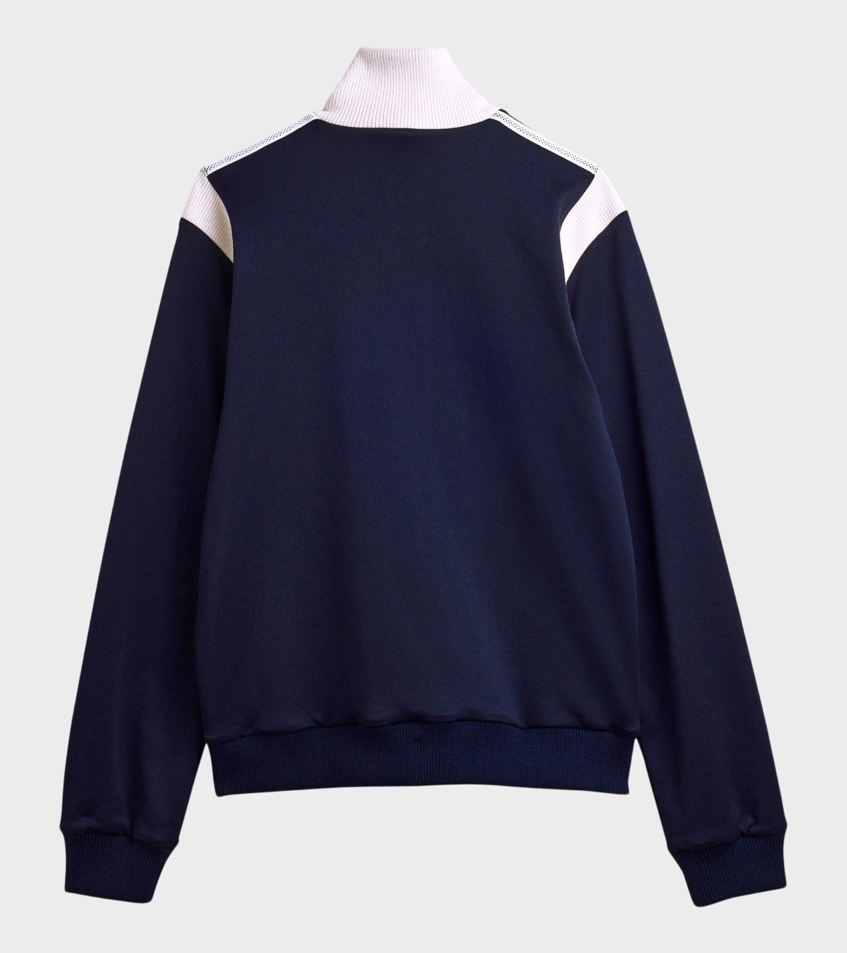 Track-jakke fra Adidas i samarbejde med Wales Bonner. Jakken er fremstillet i en kraftig nylon- og bomuldstwill-kvalitet. Den har råhvide detaljer, en høj krave, ribstrikkede kanter, en sølv dobbeltgående lynlåslukning samt to skjult lynlåslommer på fronten. På fronten er to små broderede logoer.