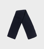 Navy ribstrikket tørklæde fra Andersen-Andersen. Dette tørklæde er fremstillet i kraftigt jomfru uld.