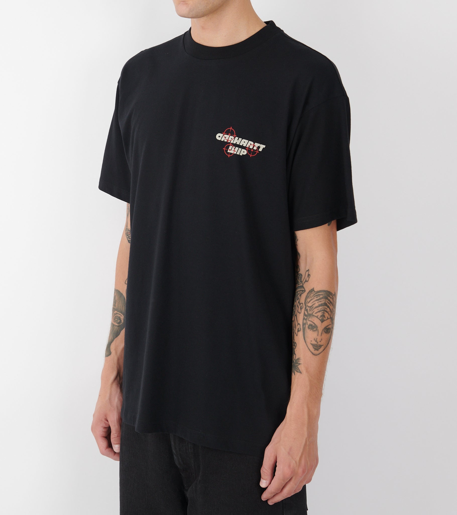 Sort t-shirt i økologisk bomuld fra Carhartt WIP. T-shirten har logoprint ved venstre bryst samt et stort print bagpå.