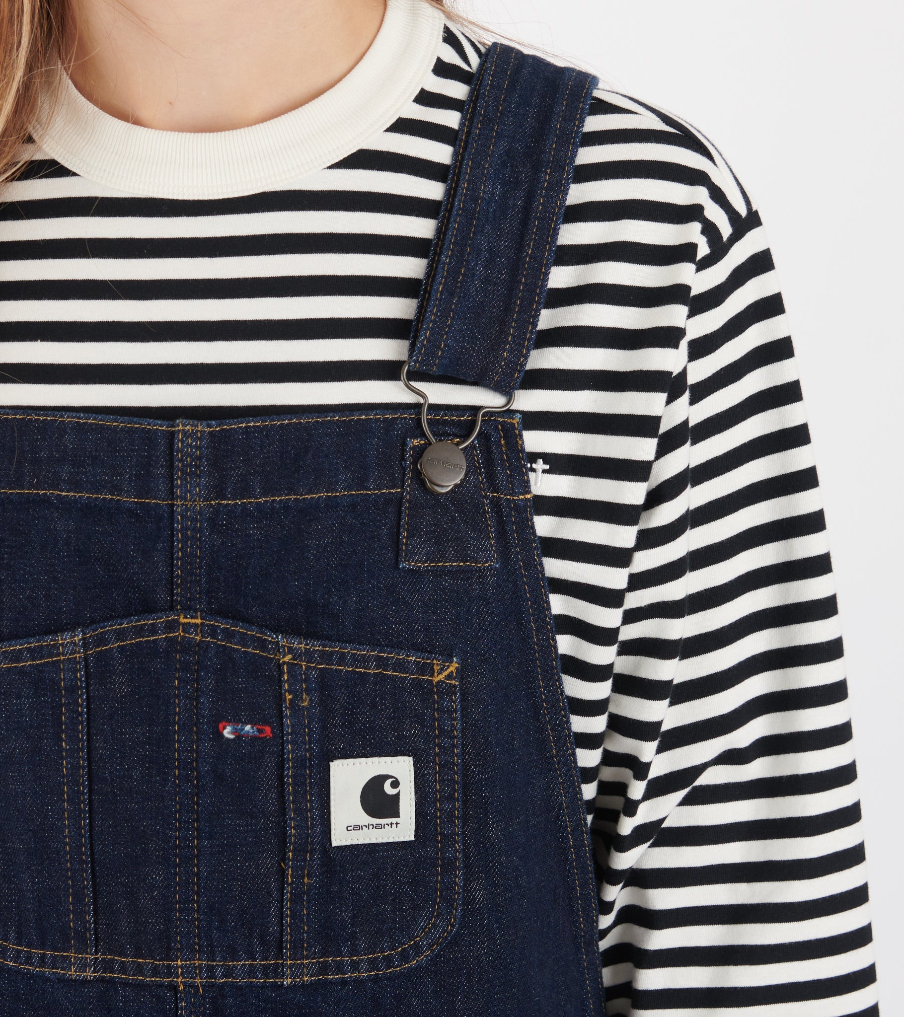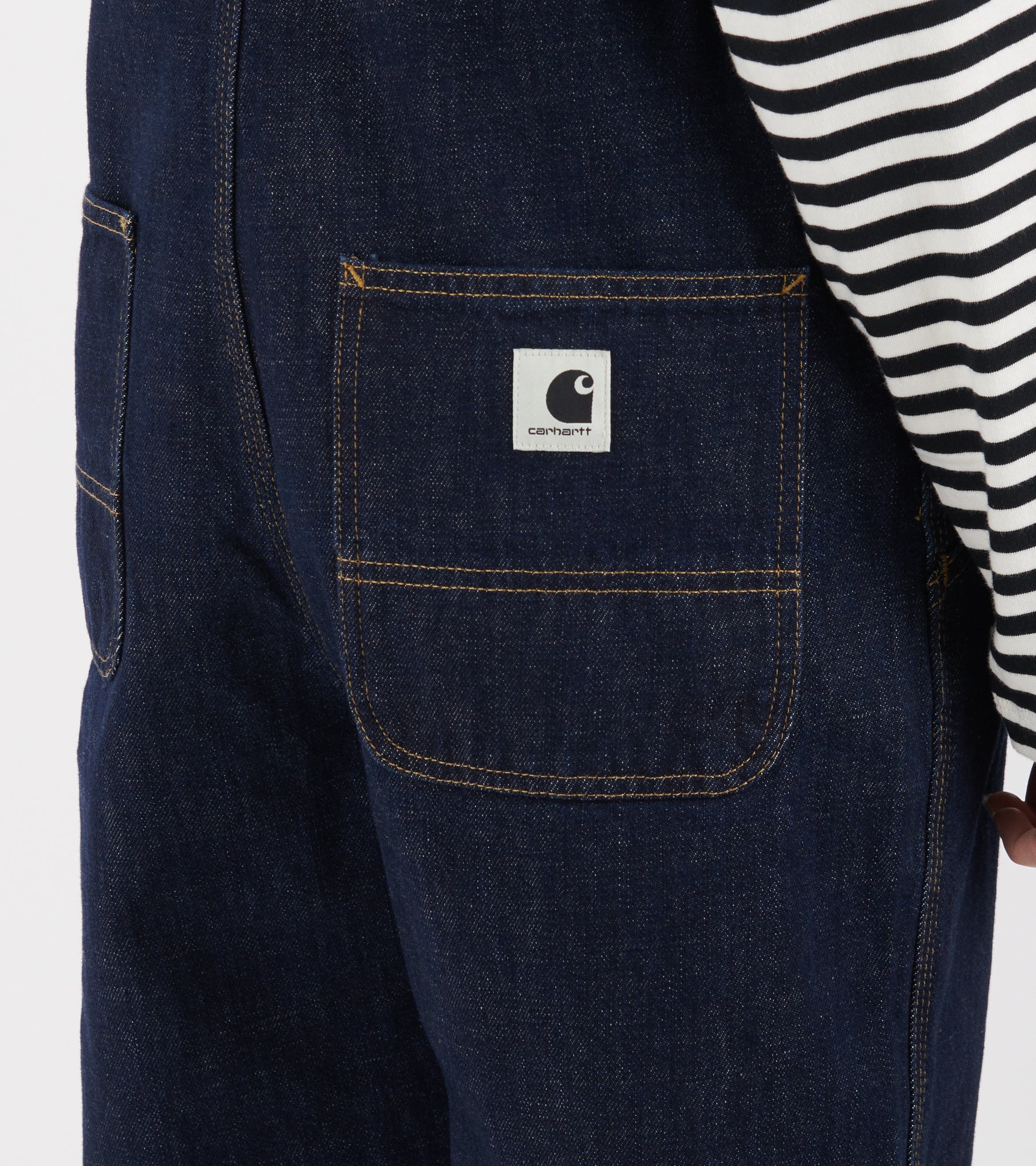 Smækbukser i bomuldsdenim fra Carhartt WIP. Disse smækbukser er fremstillet i 'Camano' denim og har en skrålomme i hver side, to lommer bagpå og work-wear inspirerede lommer på fronten. Smækbukserne har det ikoniske logo på fronten samt bagpå den ene baglomme.