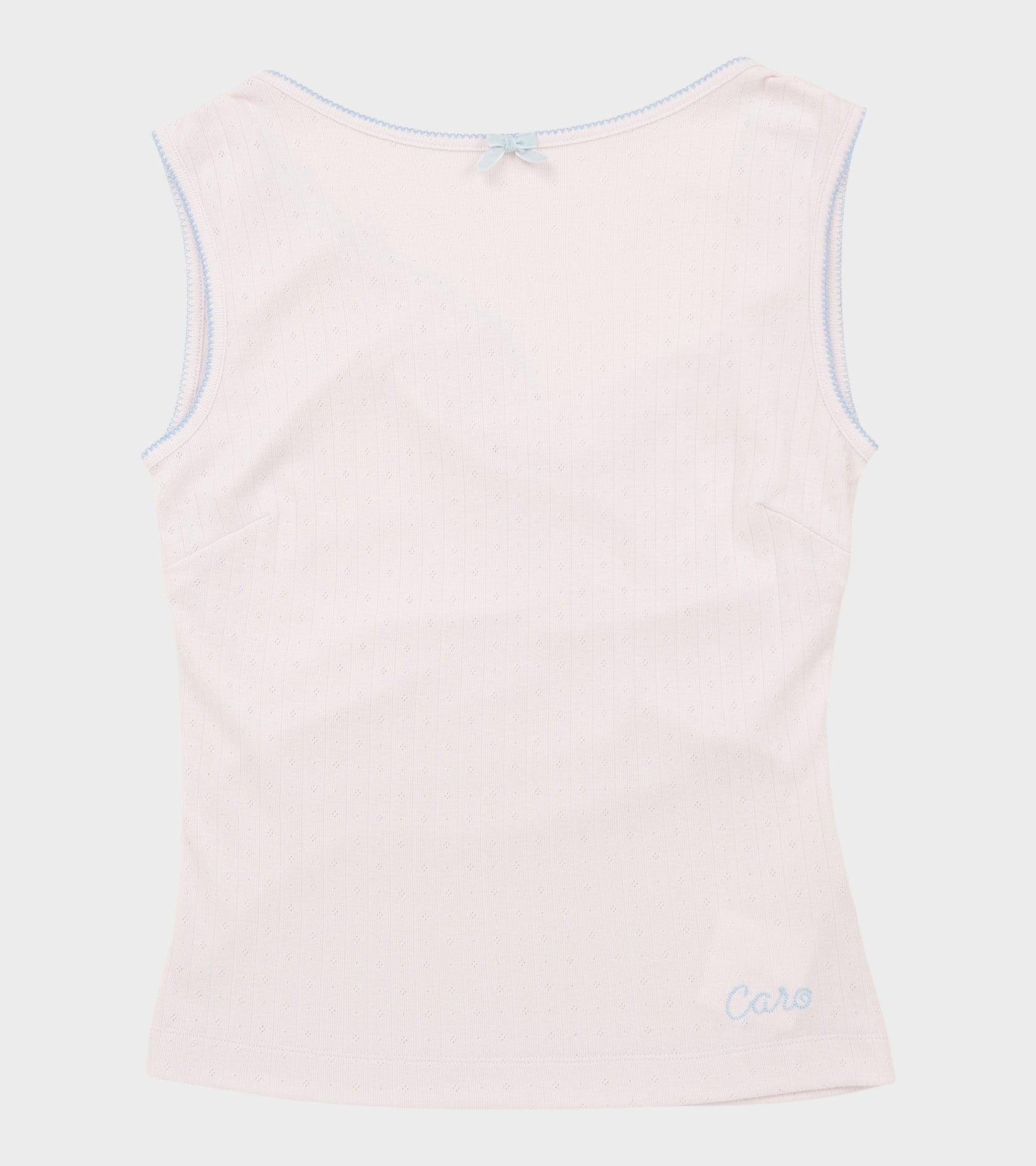 Lyserød top med lyseblå detaljer fra Caro Editions.