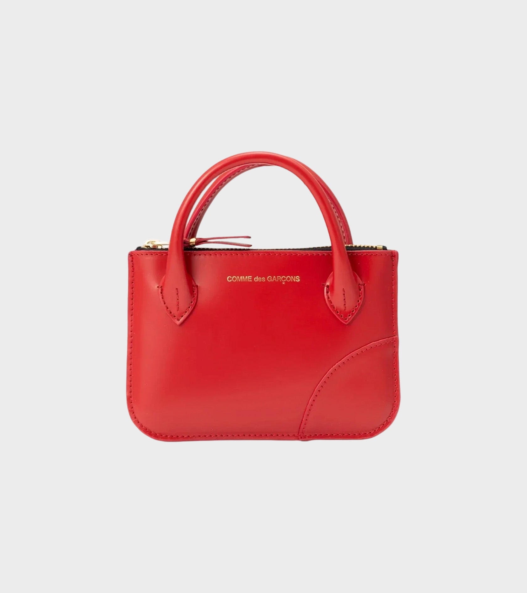 Lille rød pung med et dobbelt håndtag fra Comme des Garcons Wallet.
