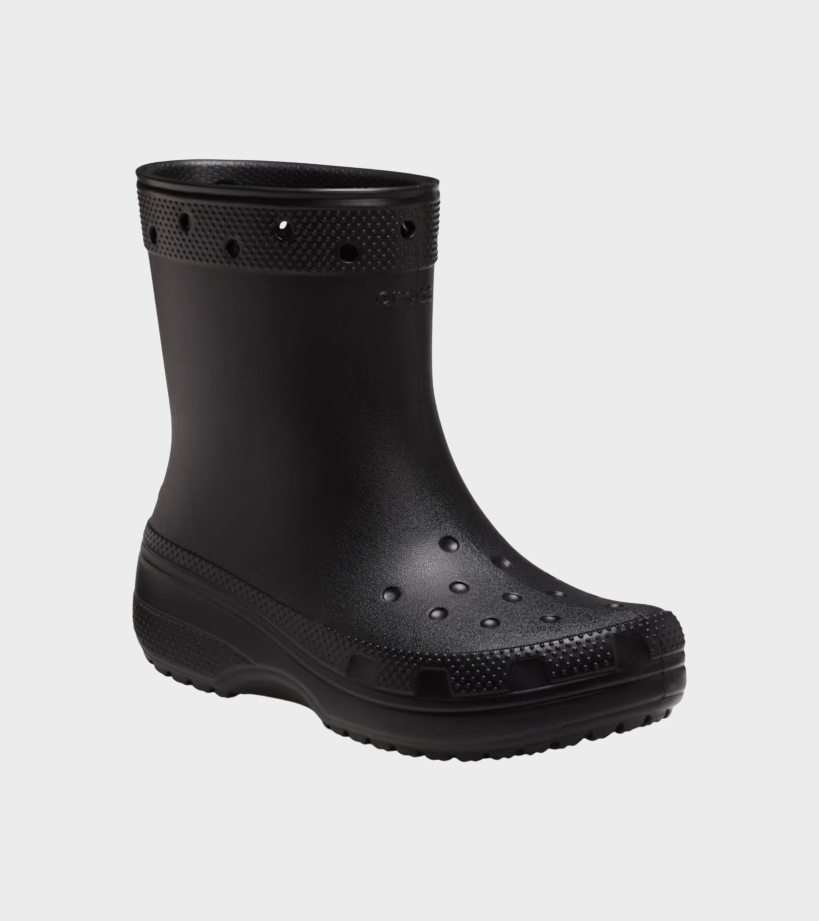 Classic Boot i sort fra Crocs. Disse støvler er fremstillet i termoplastisk (EVA) og har et diskret logo bagpå samt foran.