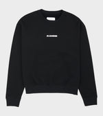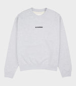 Lysegrå sweatshirt fra Jil Sander. Denne sweatshirt har en rund hals samt et sort printet logo på fronten. Den er foret med blødt fleece på indersiden.