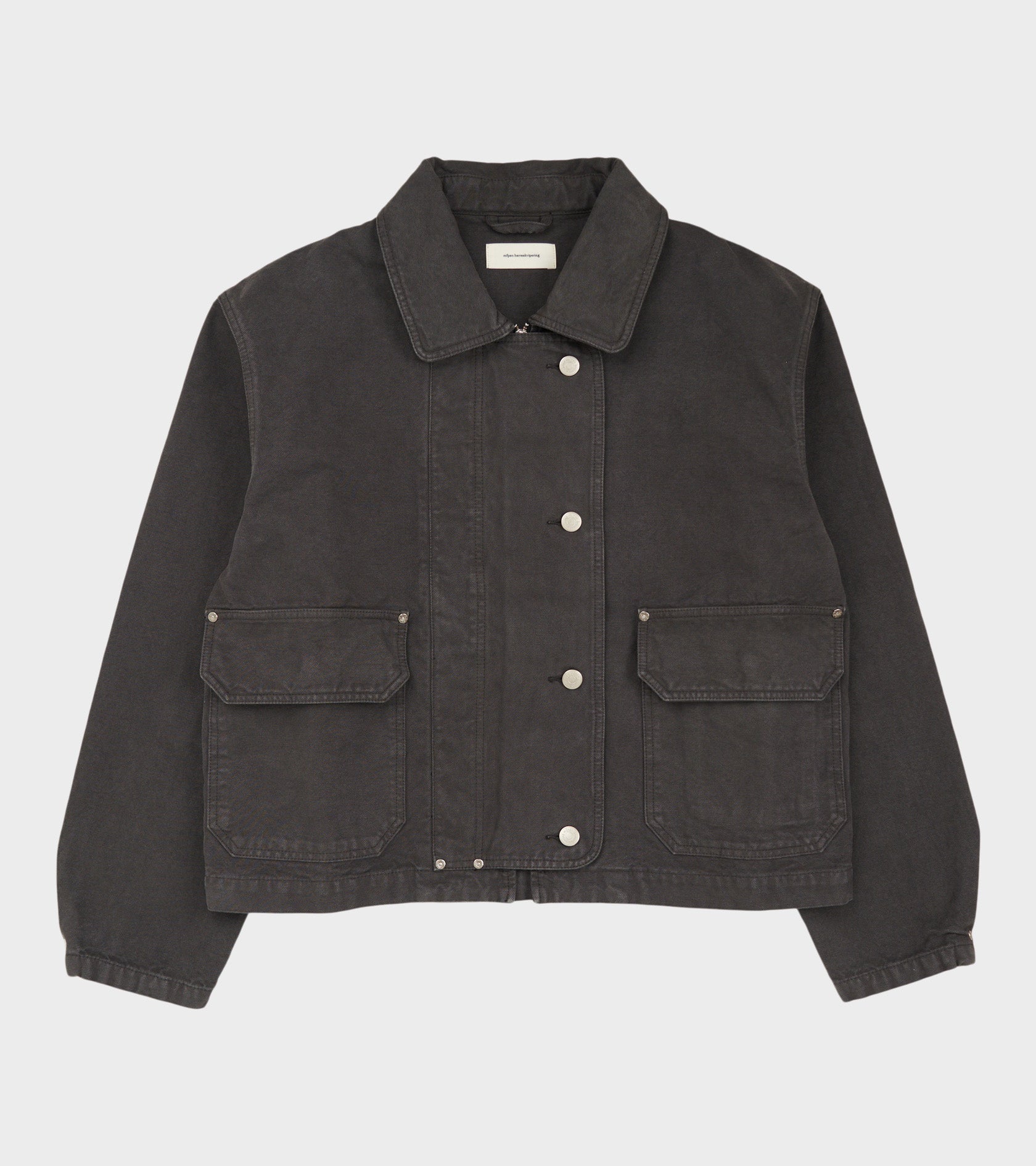Grå jakke i økologisk 'garment washed' bomuldskanvas fra Mfpen.