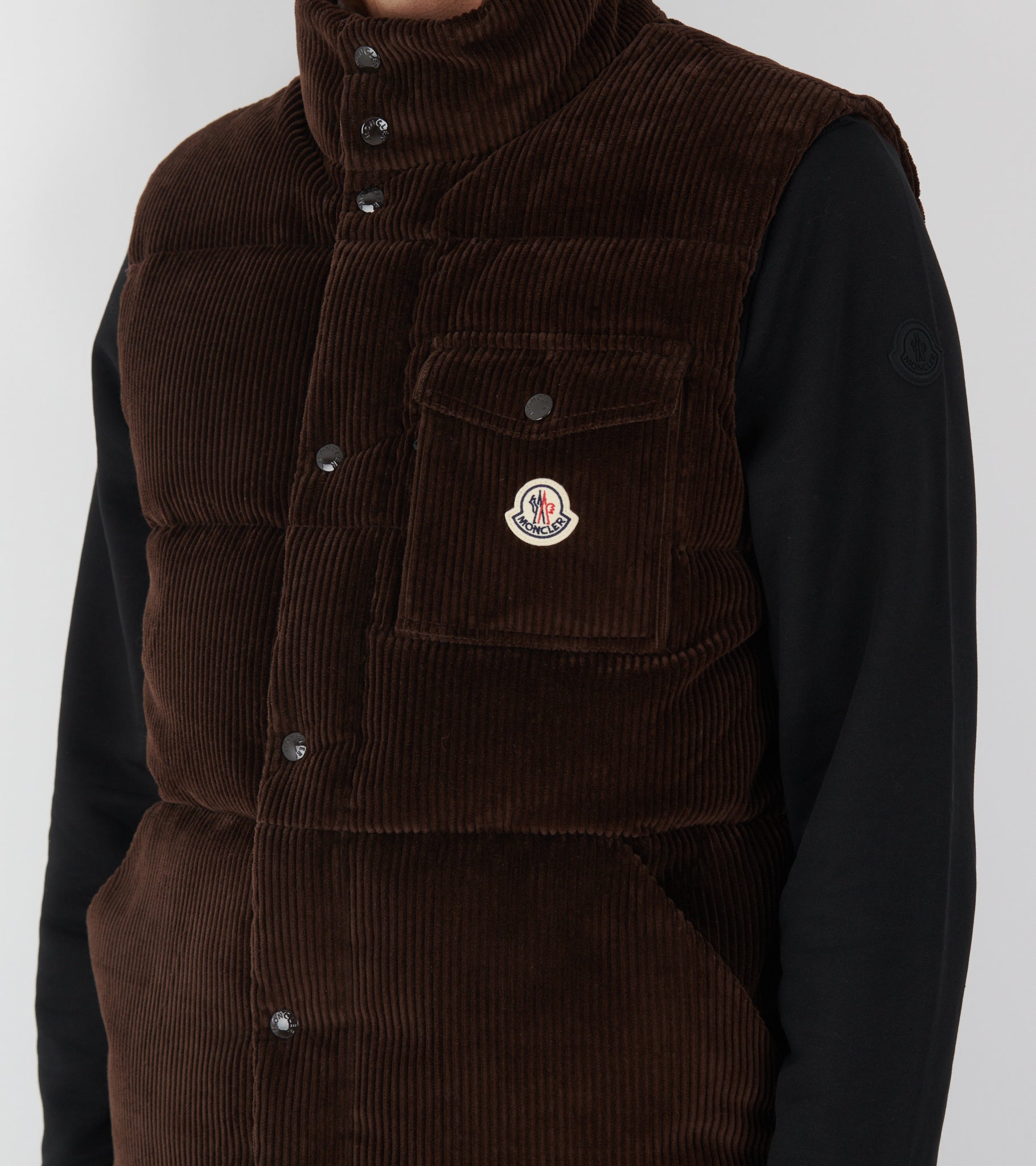Brun dunvest i bomuldsfløjl fra Moncler.