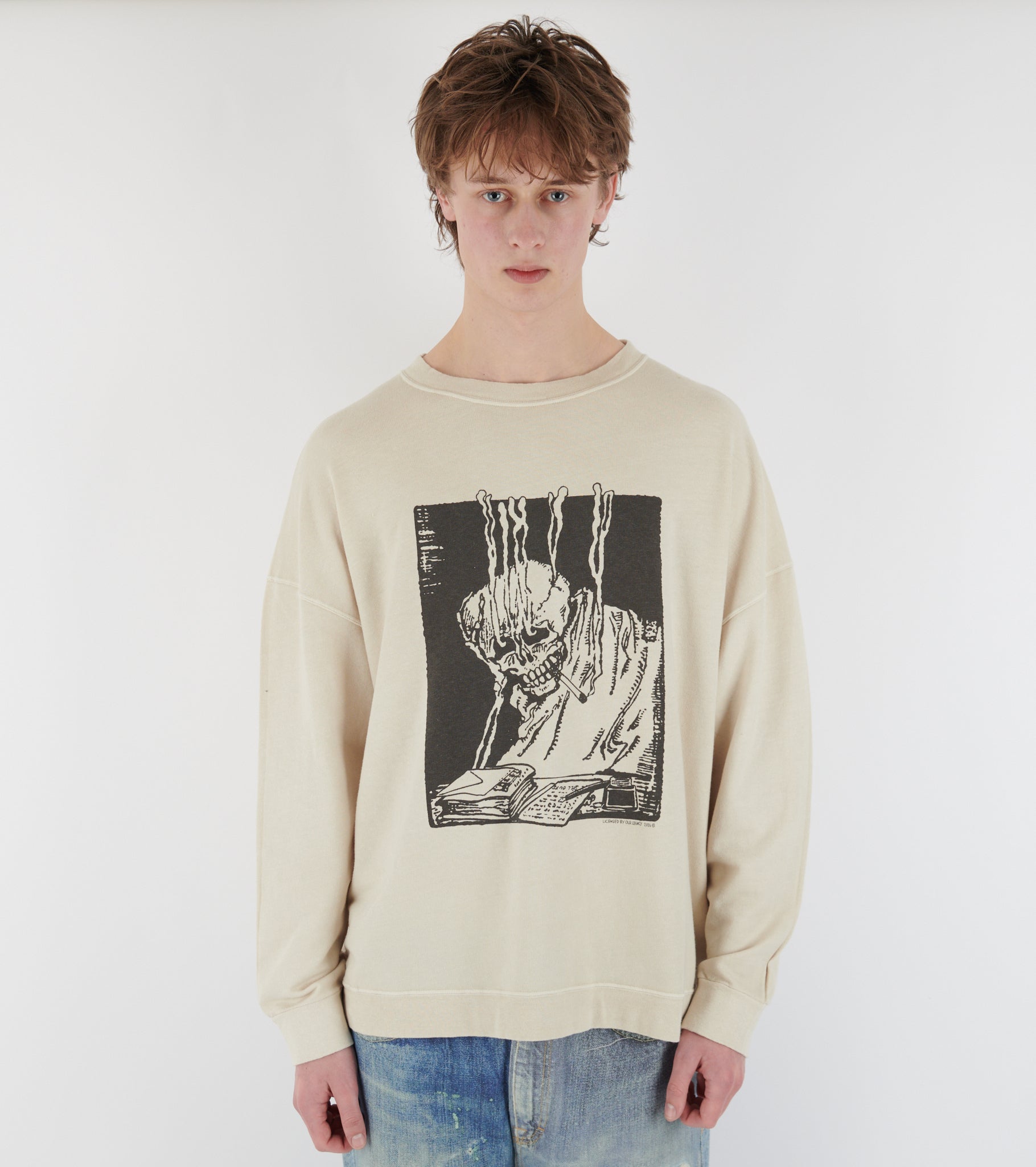Pigment dyed sweatshirt med print fra Our Legacy. Sweatshirten er fremstillet i en ekstra 'lightweight' kvalitet og har en rund hals, sænkede skuldre, overlock-syninger samt laser-printet print på både front og ryg.