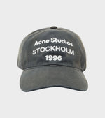 Faded sort kasket i økologisk bomuld fra Acne Studios. Kasketten er justerbar i størrelsen og har et hvidt broderet logo på fronten.