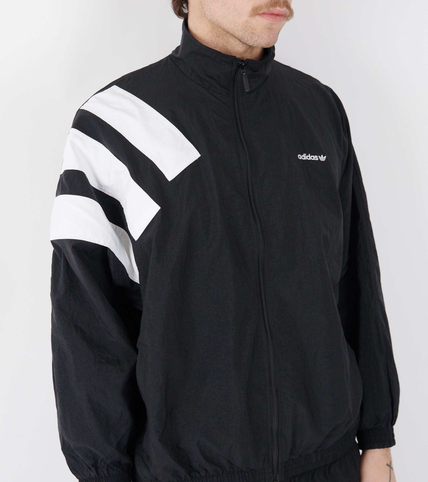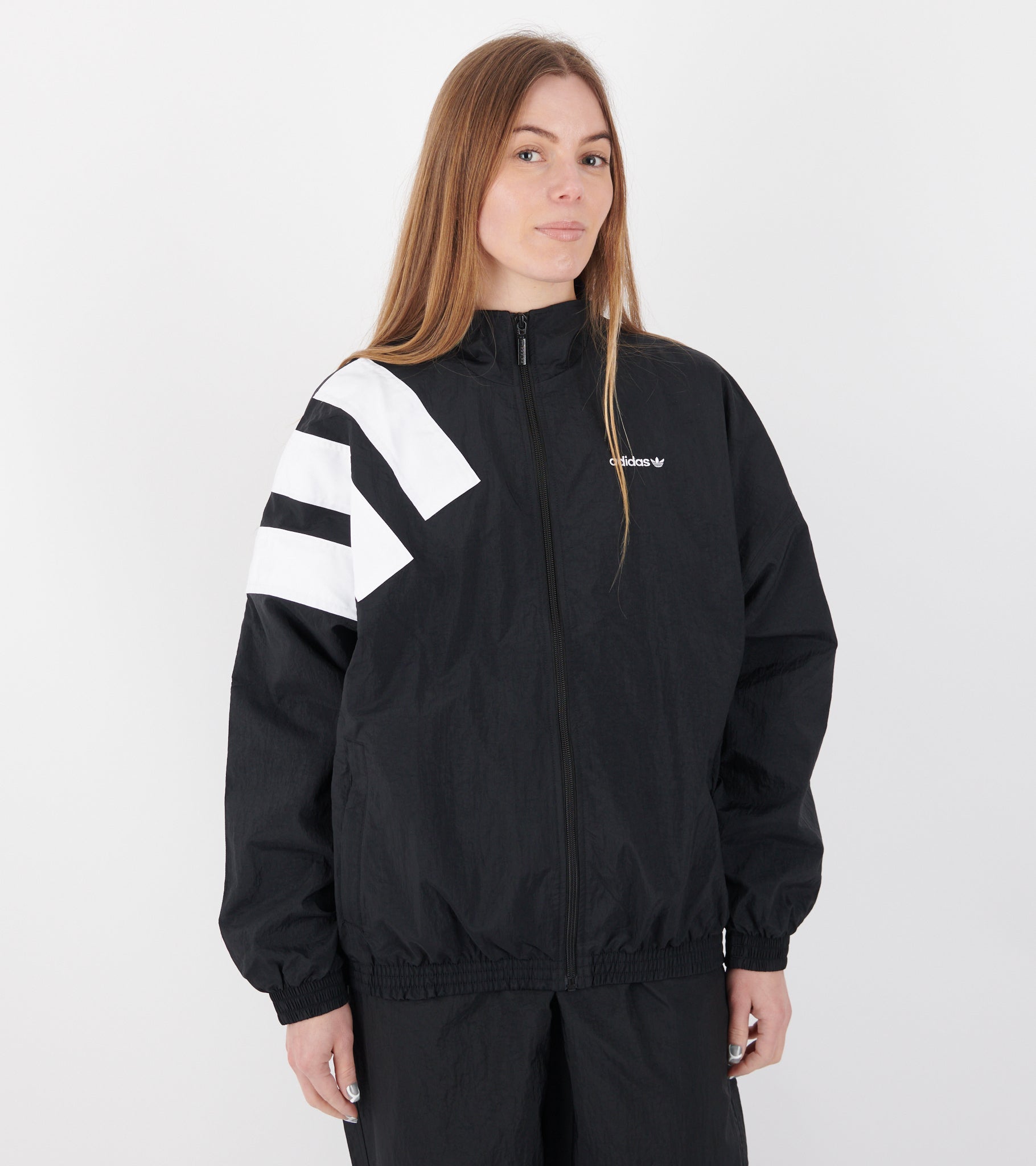 Sort trackjakke i genanvendt nylon fra Adidas.