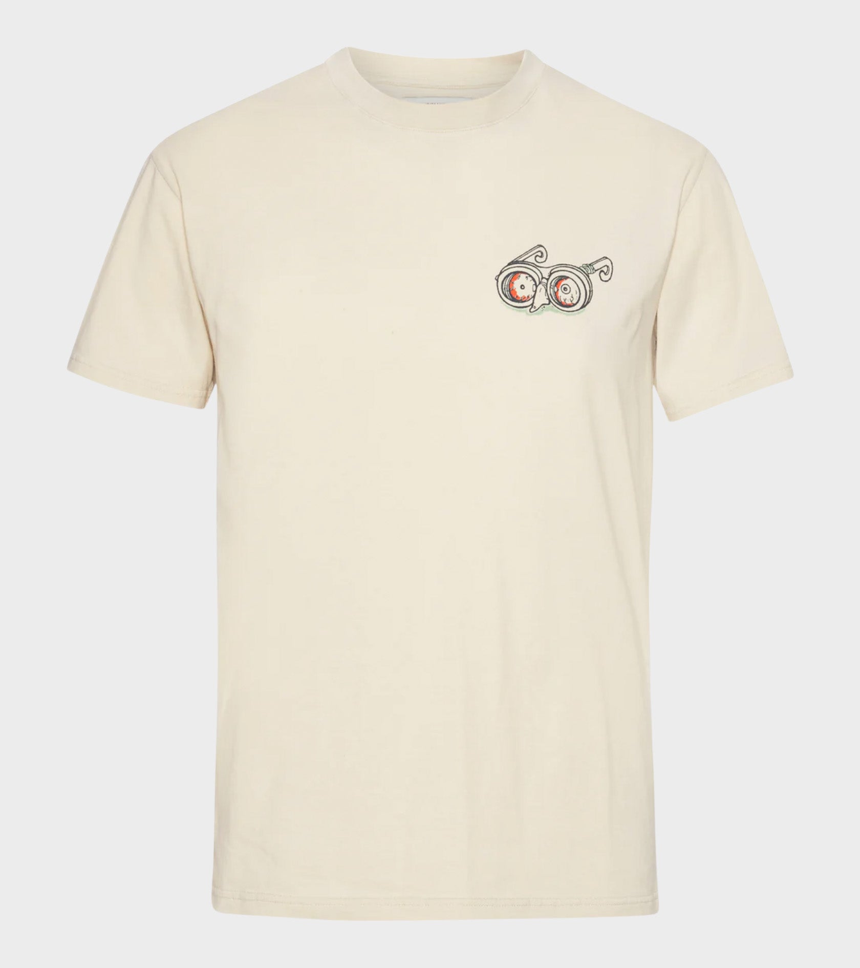 Råhvid t-shirt med print fra Henrik Vibskov. T-shirten har print ved venstre bryst samt bagpå ryggen.