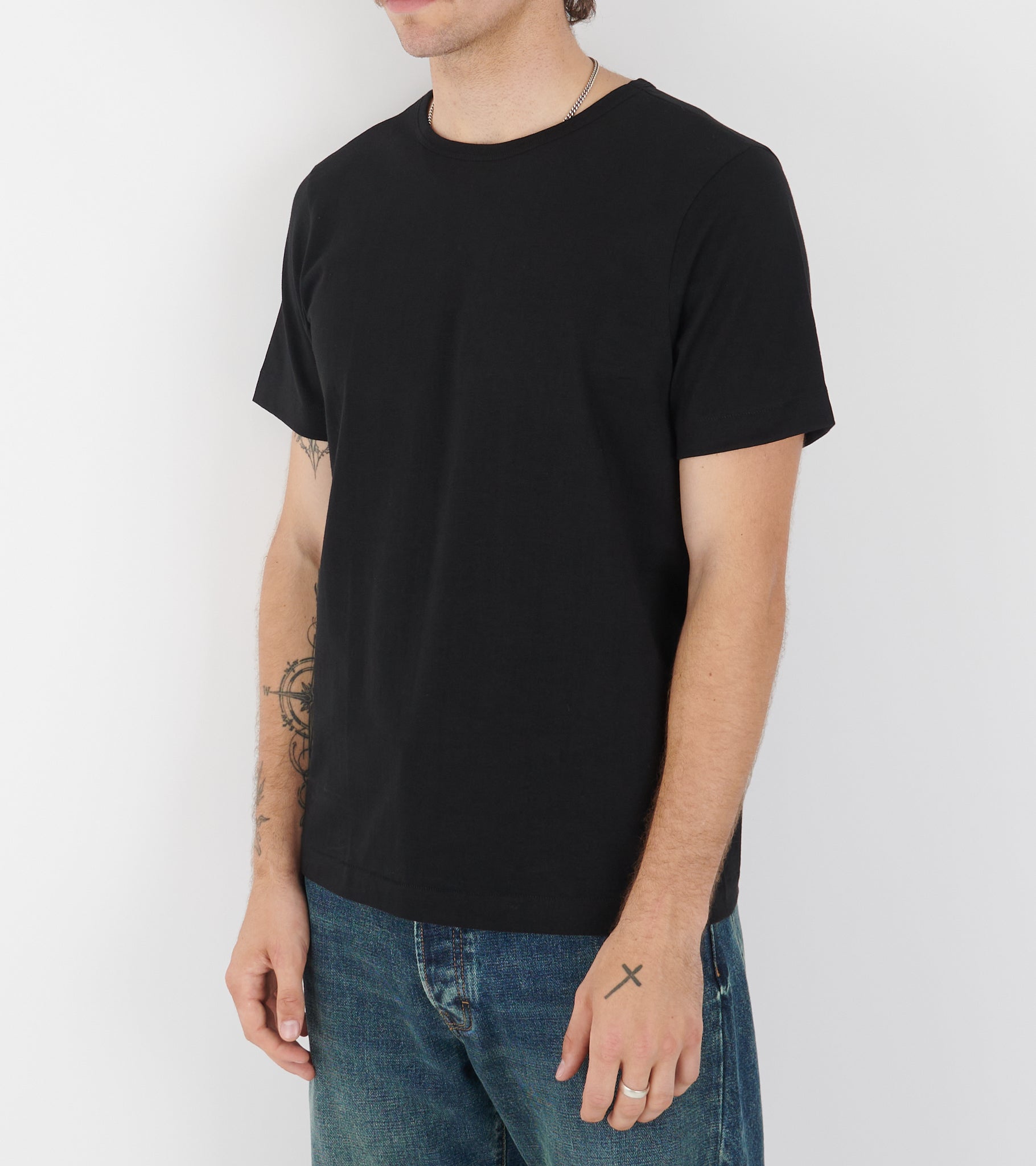 Sort t-shirt i økologisk bomuld fra Merz B Schwanen.