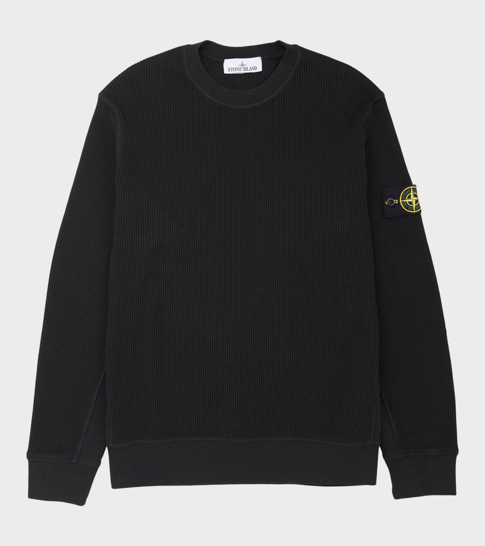 Sort sweatshirt i en 'waffle' bomuldskvalitet fra Stone Island.