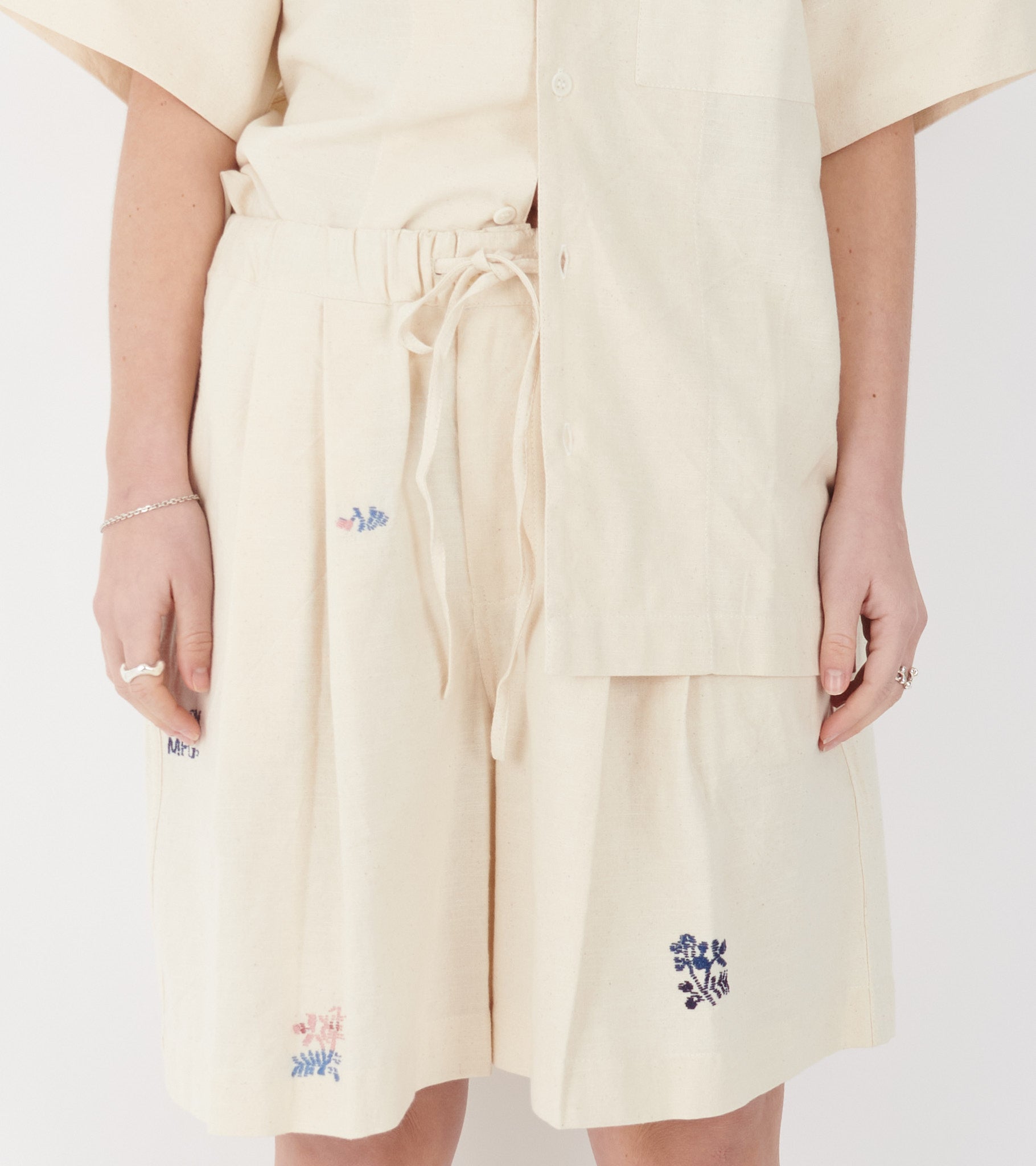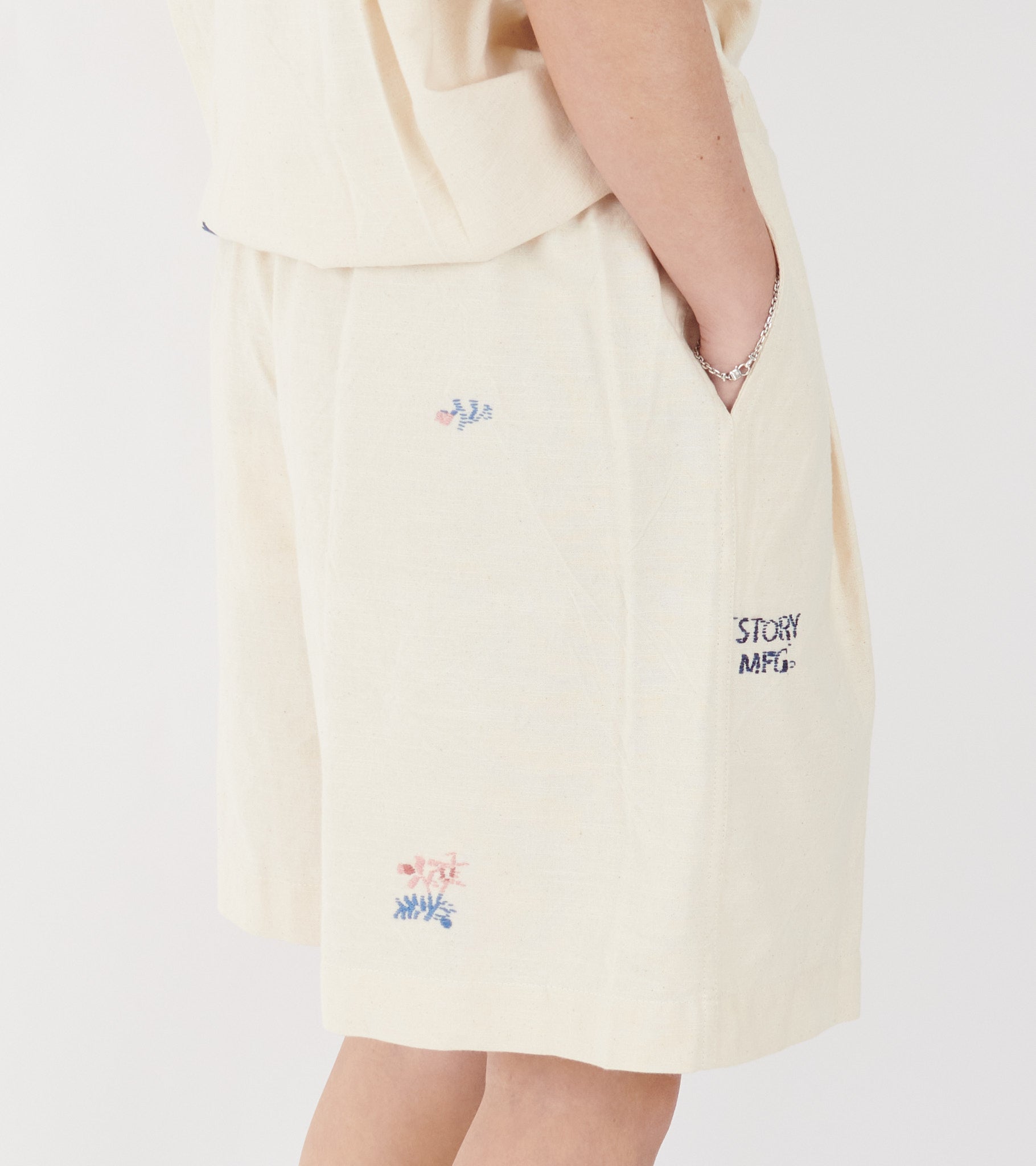Shorts med broderet logo og illustrationer fra Story mfg.