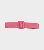 Wide red belt from Caro Editions. Aida Belt is made of leather and has gold hardware and a large square buckle. The belt is one size.