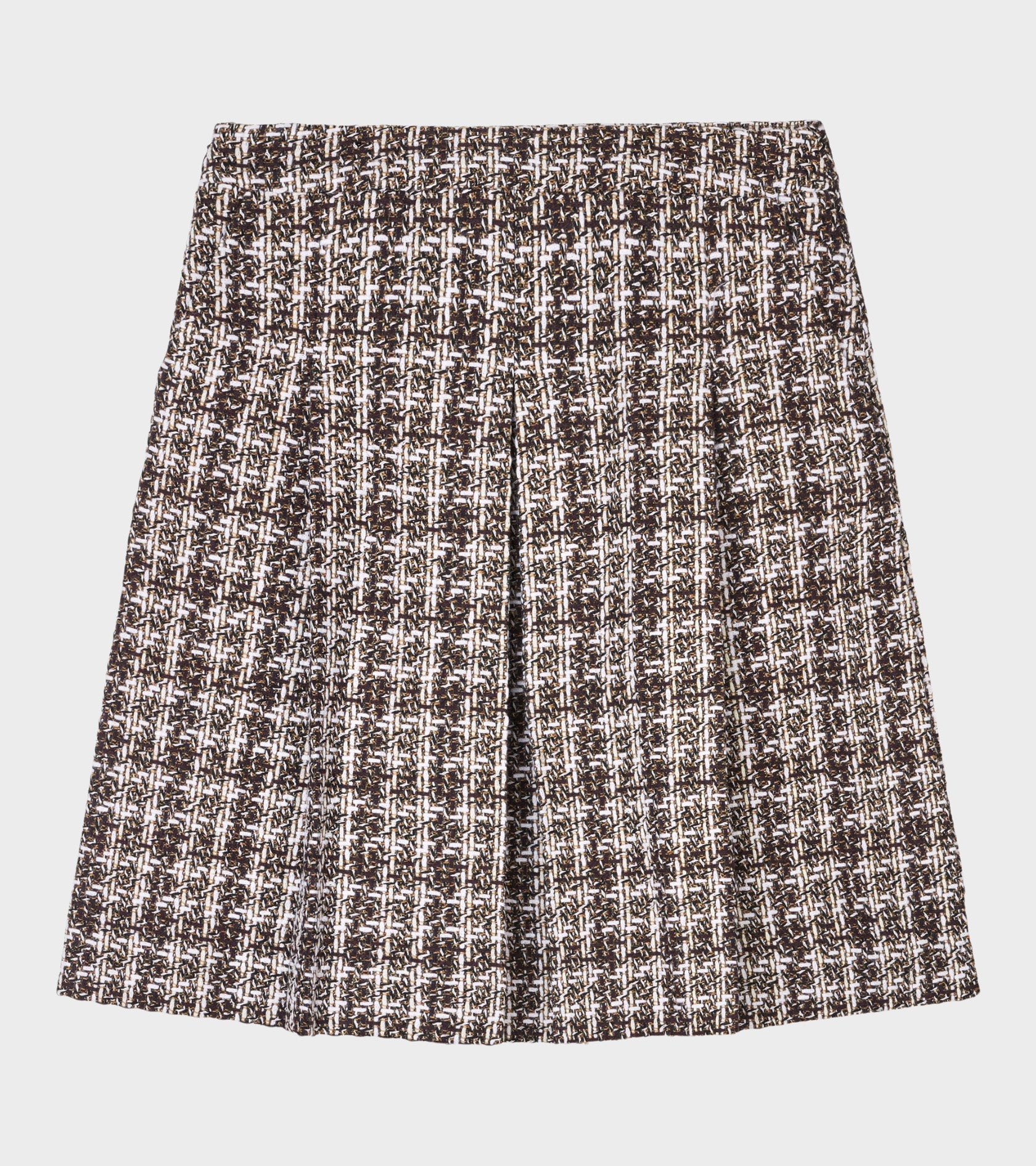 Checkered skirt from Gabi Gamél. The skirt has pleats and is made from a bouclé wool blend. It is lined with cotton and has a slanted pocket on each side as well as a discreet zip closure on one side.