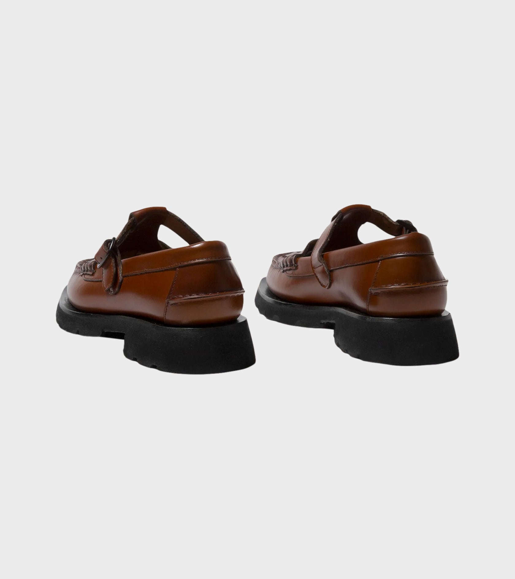Brown loafers from Hereu. Soller Sport Loafer is made of smooth calfskin and has a braided upper and a buckle closure.