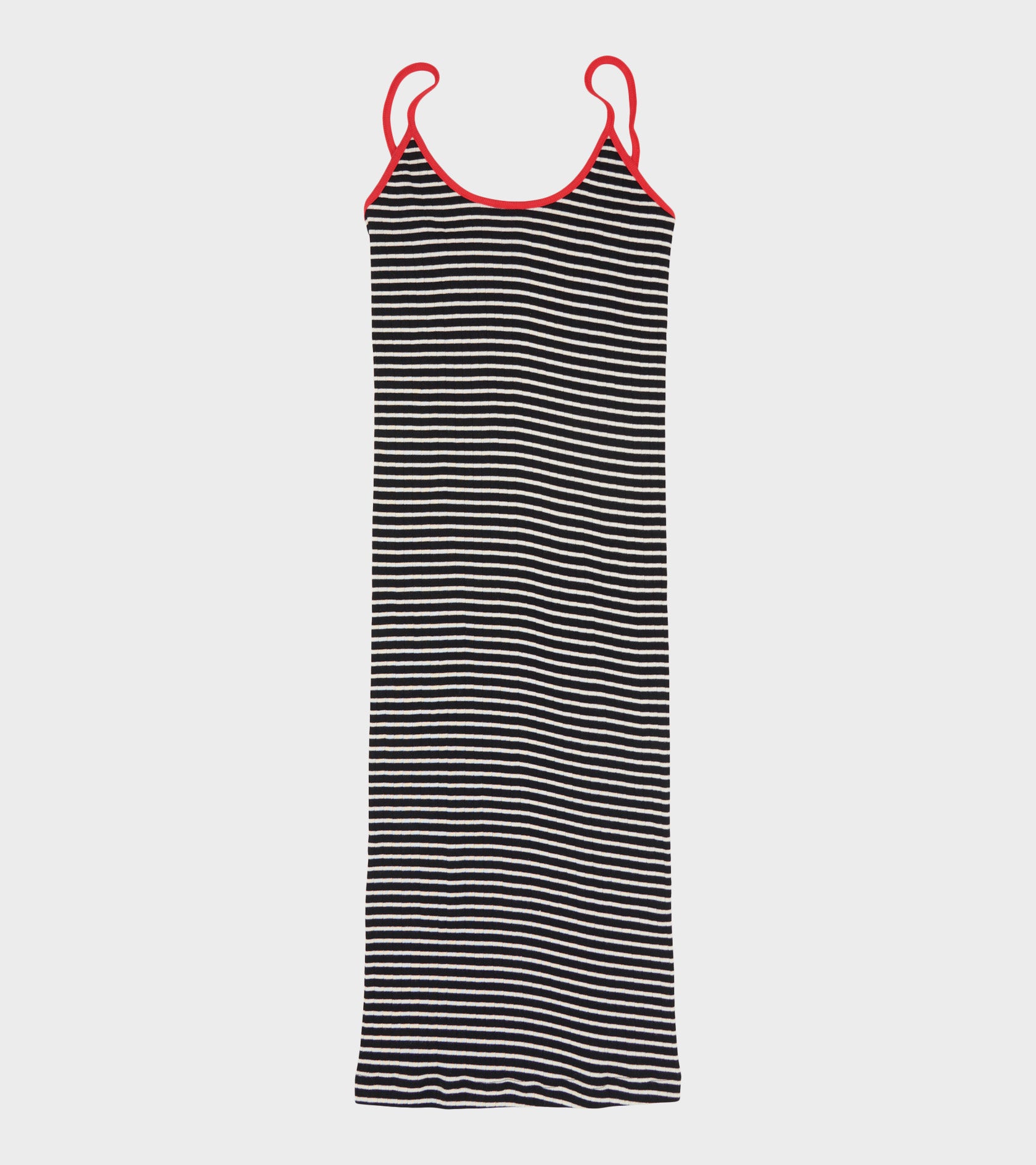101 Strap Rib Mini Dress Black/Ecru/Red