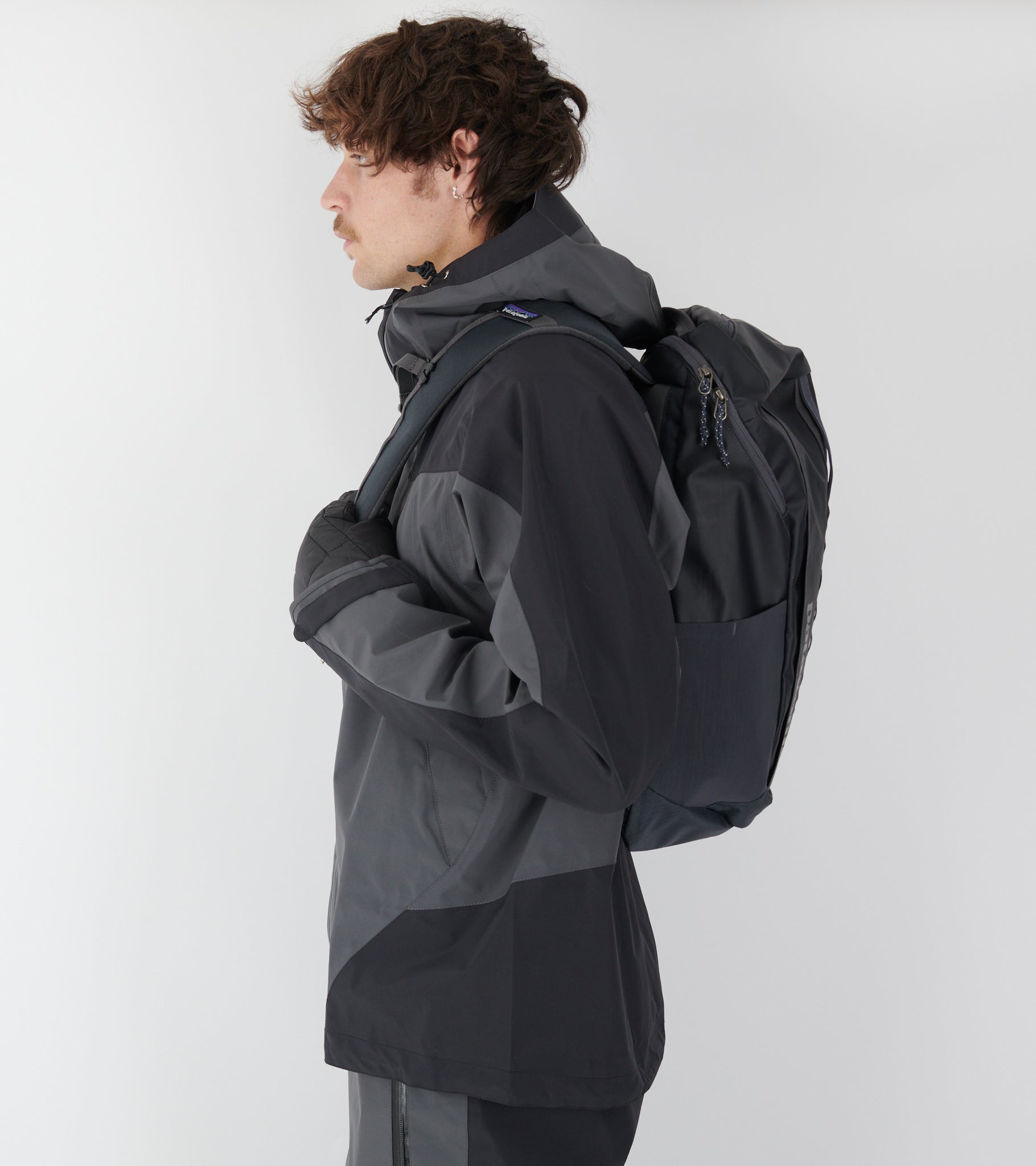 Dark navy 25 liter backpack from Patagonia. This backpack has adjustable shoulder straps and two zippered compartments. The bag is made of recycled polyester ripstop.