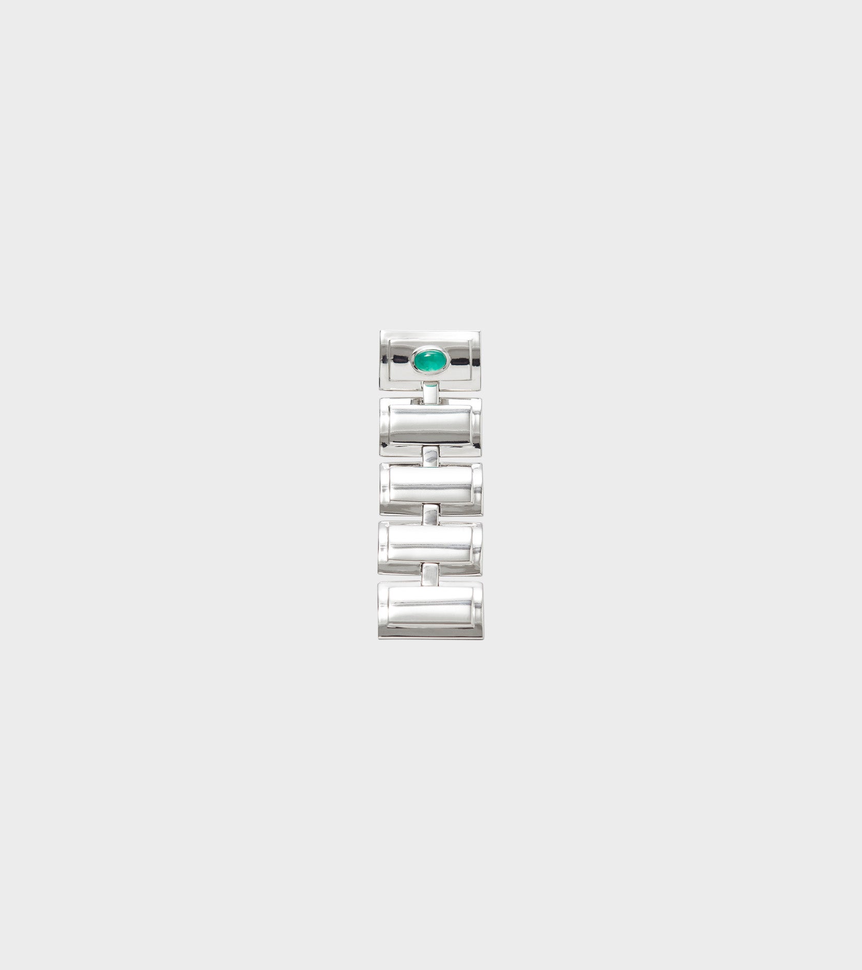 Silver earring from Trine Tuxen. Ignite Earring is made of brass with a platinum finish. The earring is detailed with a green agate.