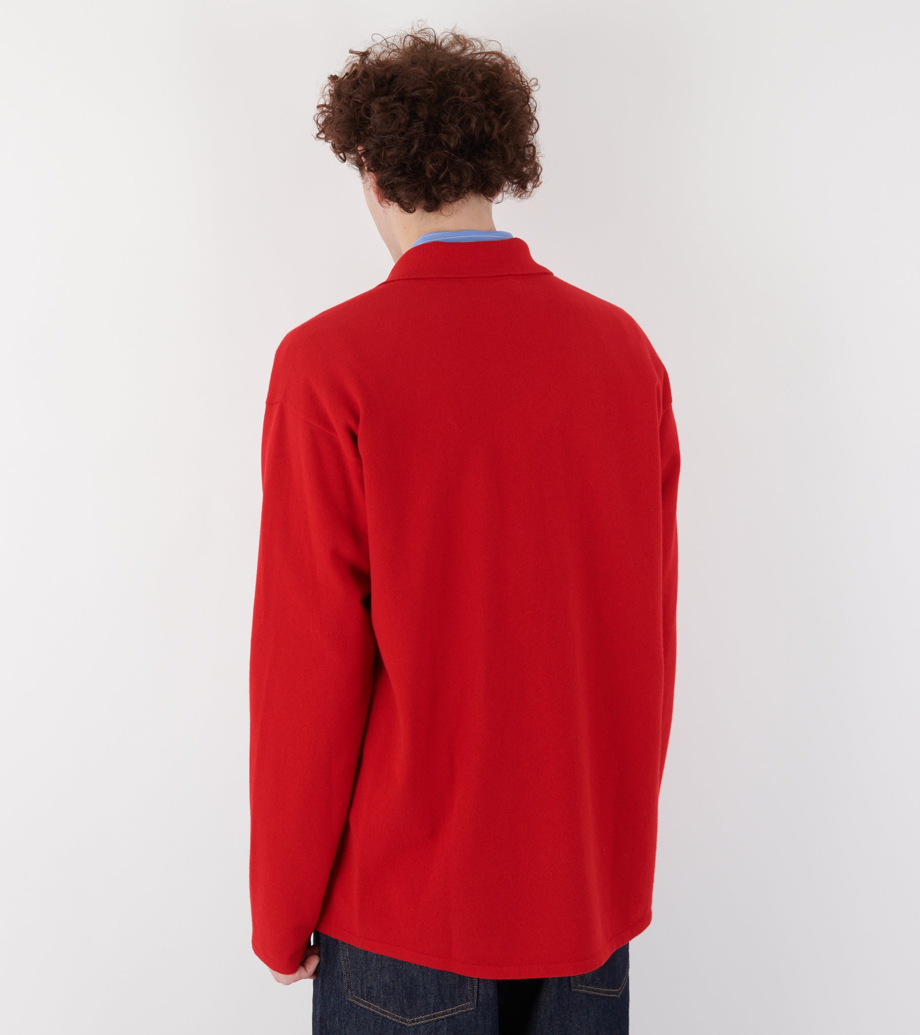 Red wool cardigan from Auralee.