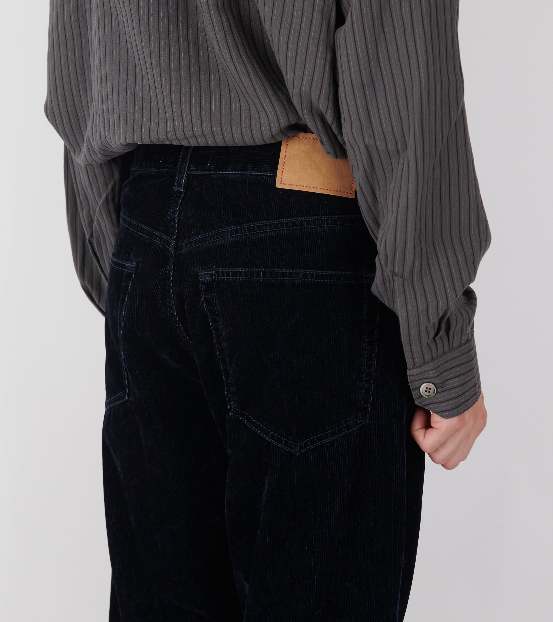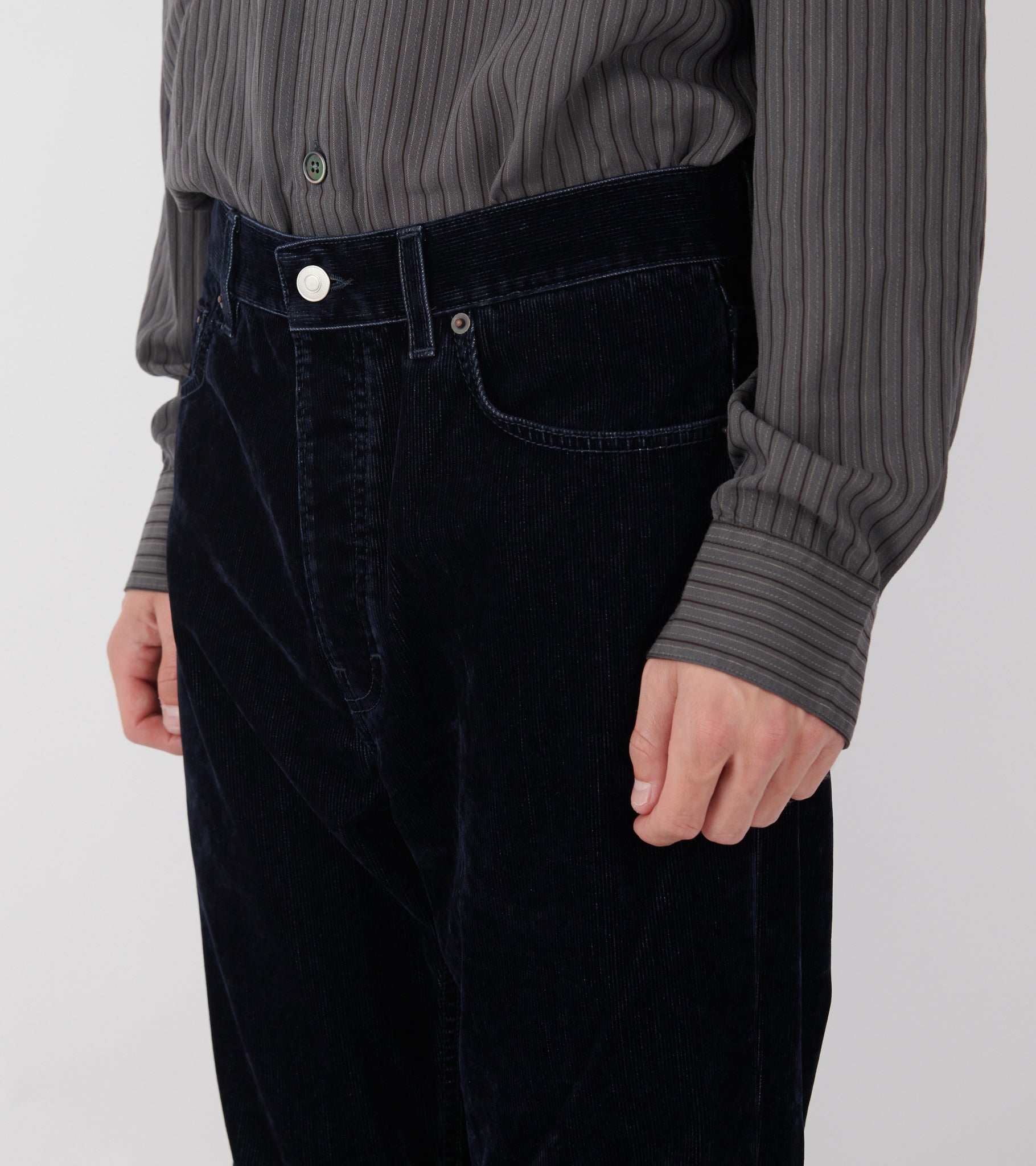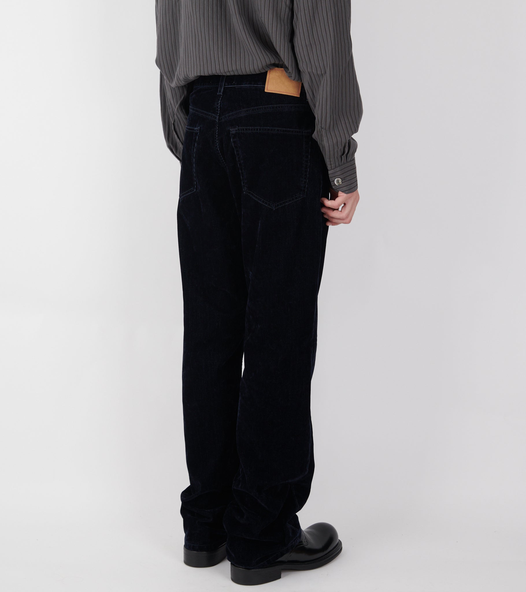 Dark blue pants from Jeanerica. Vega Corduroy Pants are made of soft cotton corduroy with a jeans look. It has three slant pockets and two back pockets. The fit is relaxed with wide straight legs.