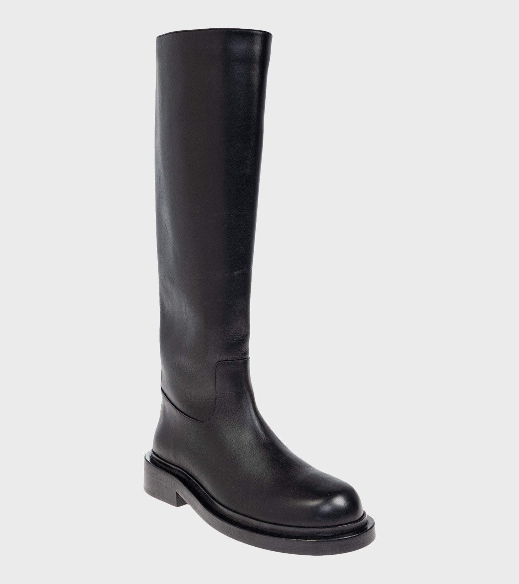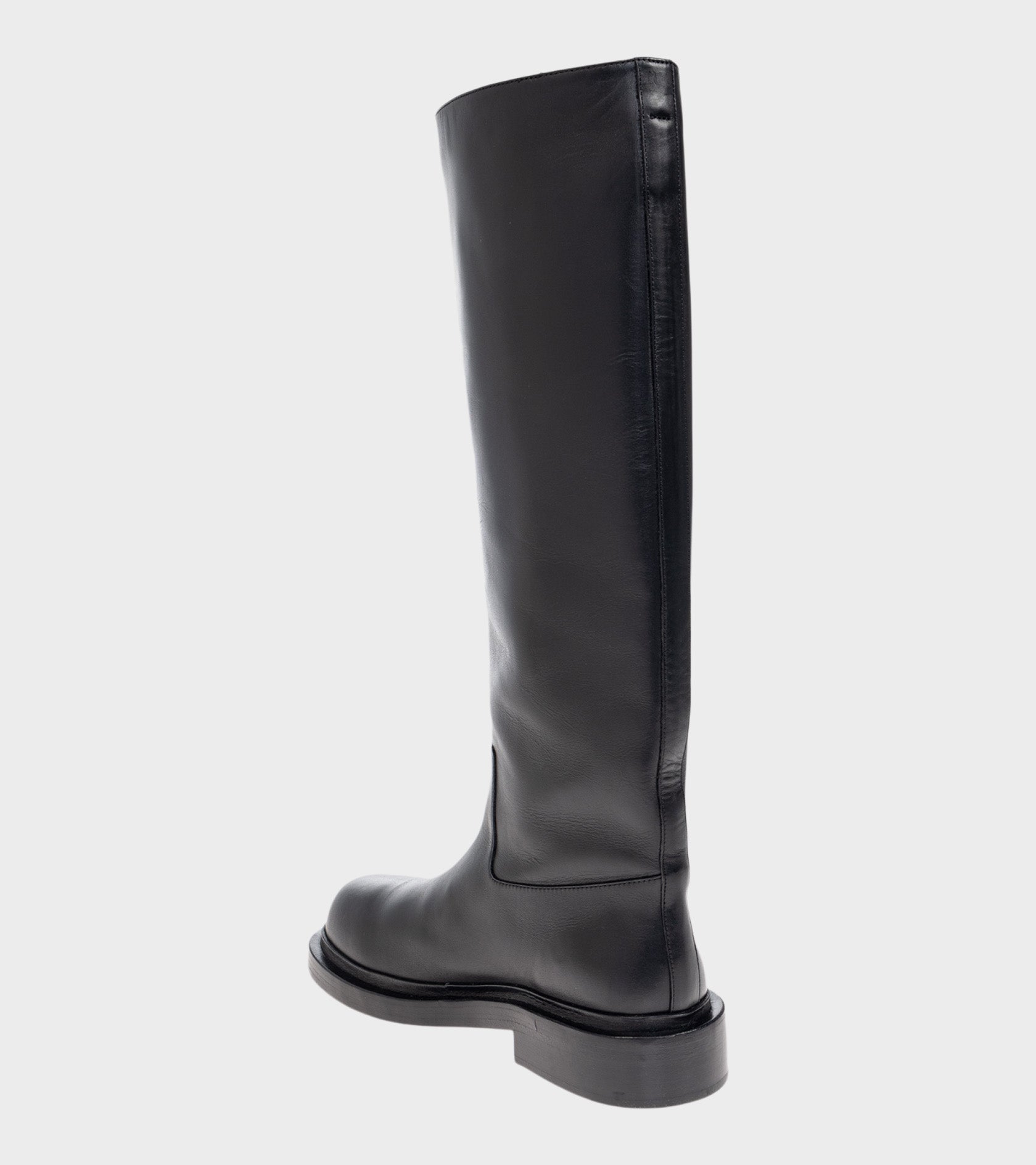 Black knee-high boots from Jil Sander. The boots are made of semi shiny calfskin and have a round toe and a small heel.