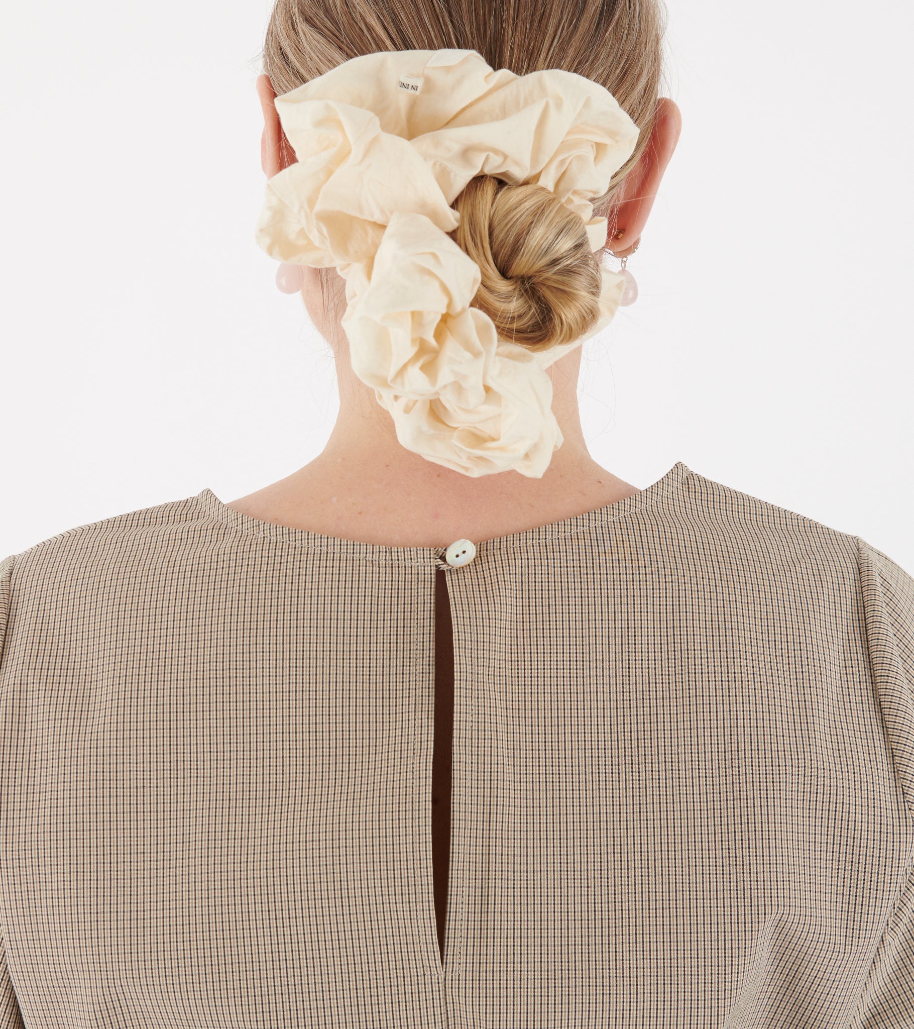 Long checkered dress in cotton poplin from Mati Mati. Freja Dress has wide sleeves, elastic at the waist and a discreet slanted pocket on each side. At the top back there is a small slit and a button closure.