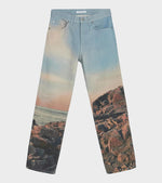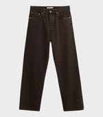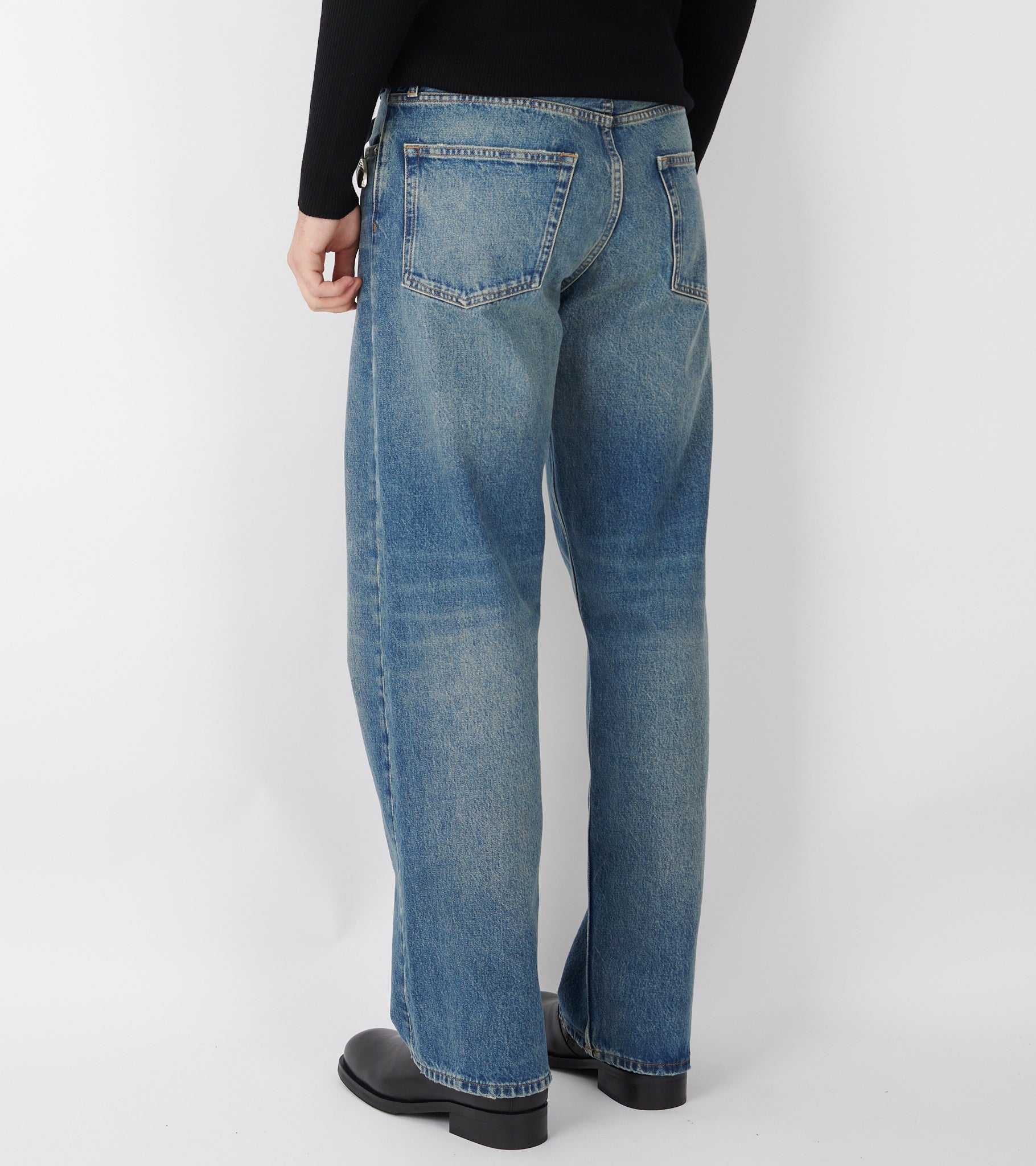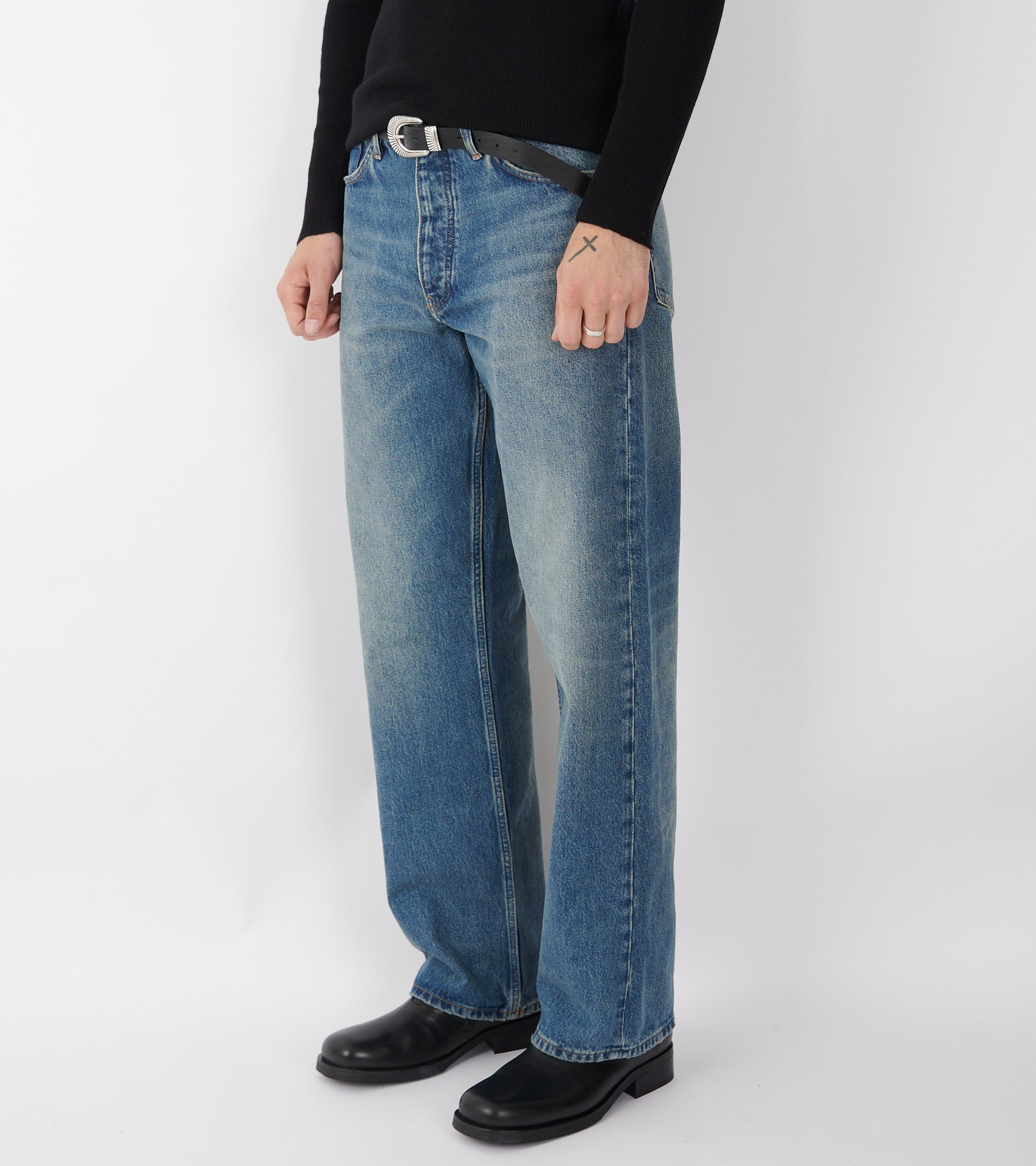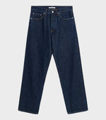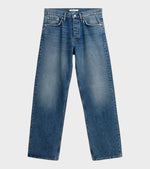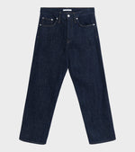 Jeans from Sunflower in the color 'Dark Blue Vintage'. Loose Jeans have belt loops, three slanted pockets on the front and two back pockets. At the top of the back is a light brown leather logotag.