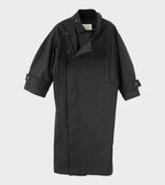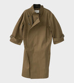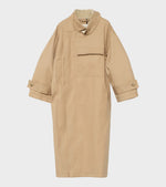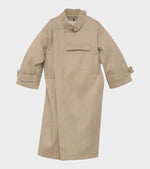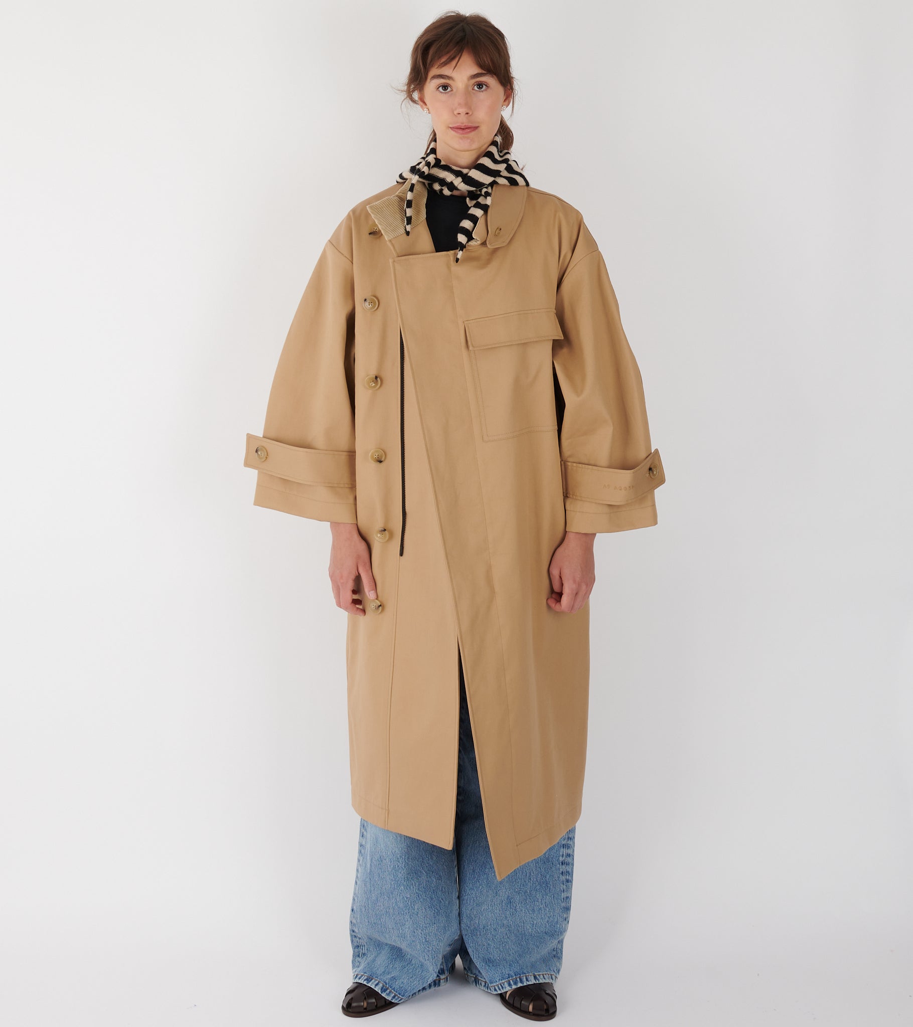 Water Resistant Coat from AF Agger in beige. The coat is made of water-resistant cotton twill and has a large and oversized fit. At the bottom of the left sleeve is a discreet logo embroidered. This jacket is produced in Europe.