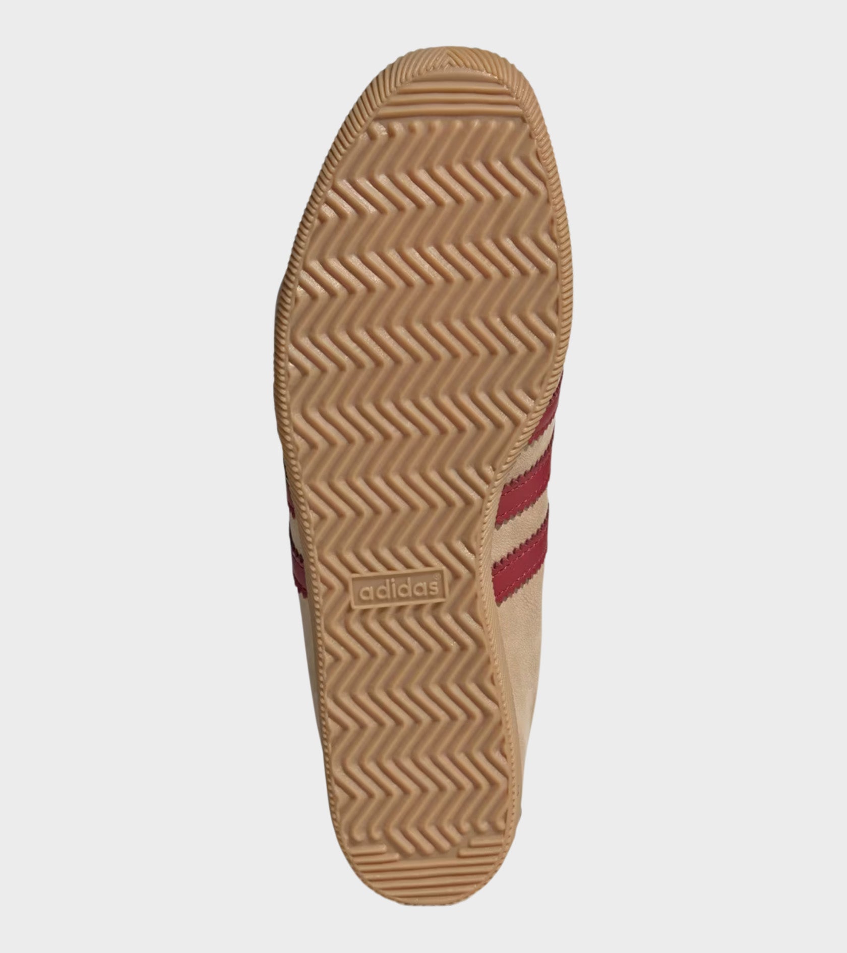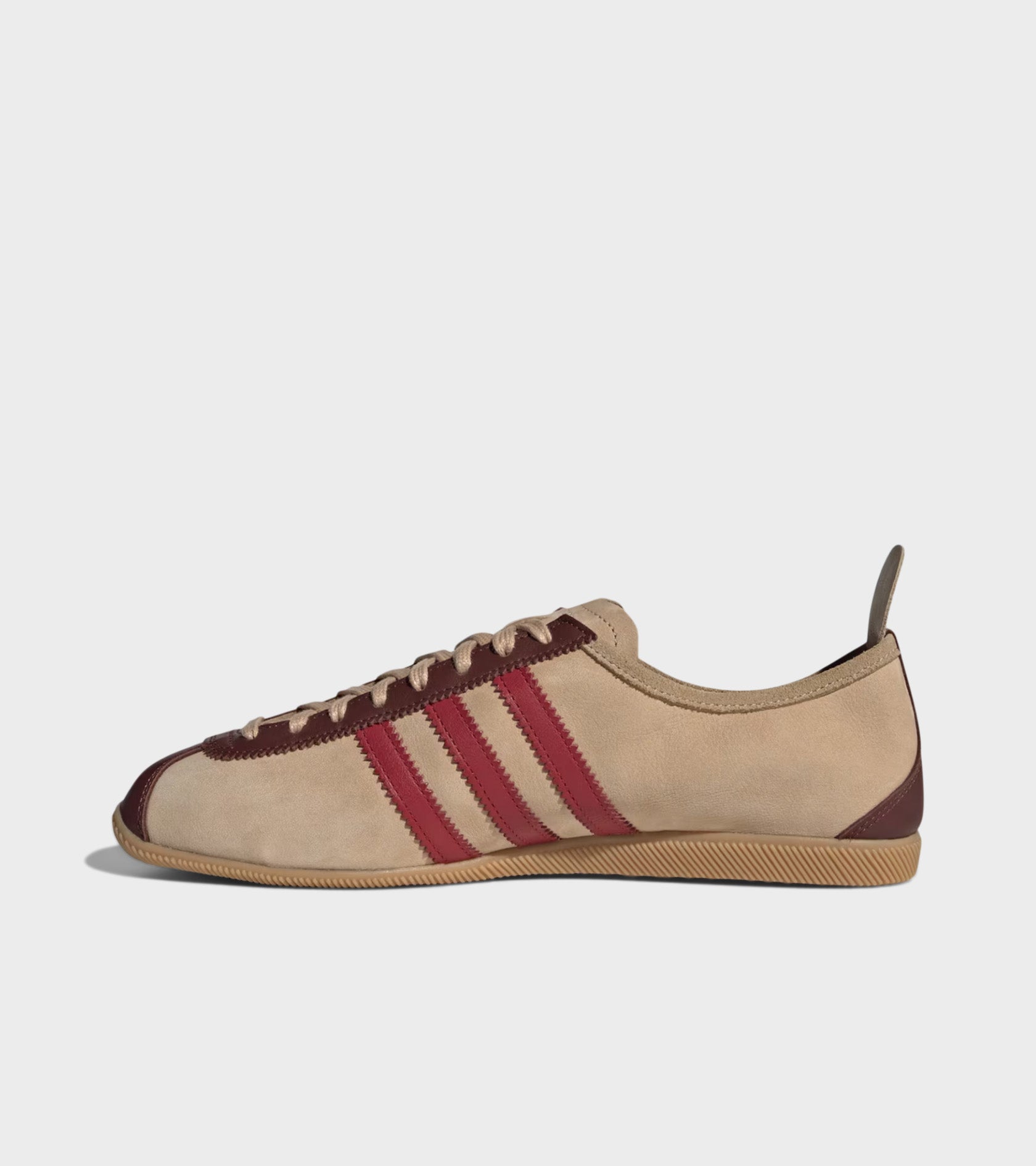 The Japan from Adidas is a relaunch of a sneaker from 1964 that was featured in a catalog for that year's global sporting event in Japan. The shoe features a beige suede upper with brown and red details. The shoe has a classic lace-up closure and a gold logo on the side.