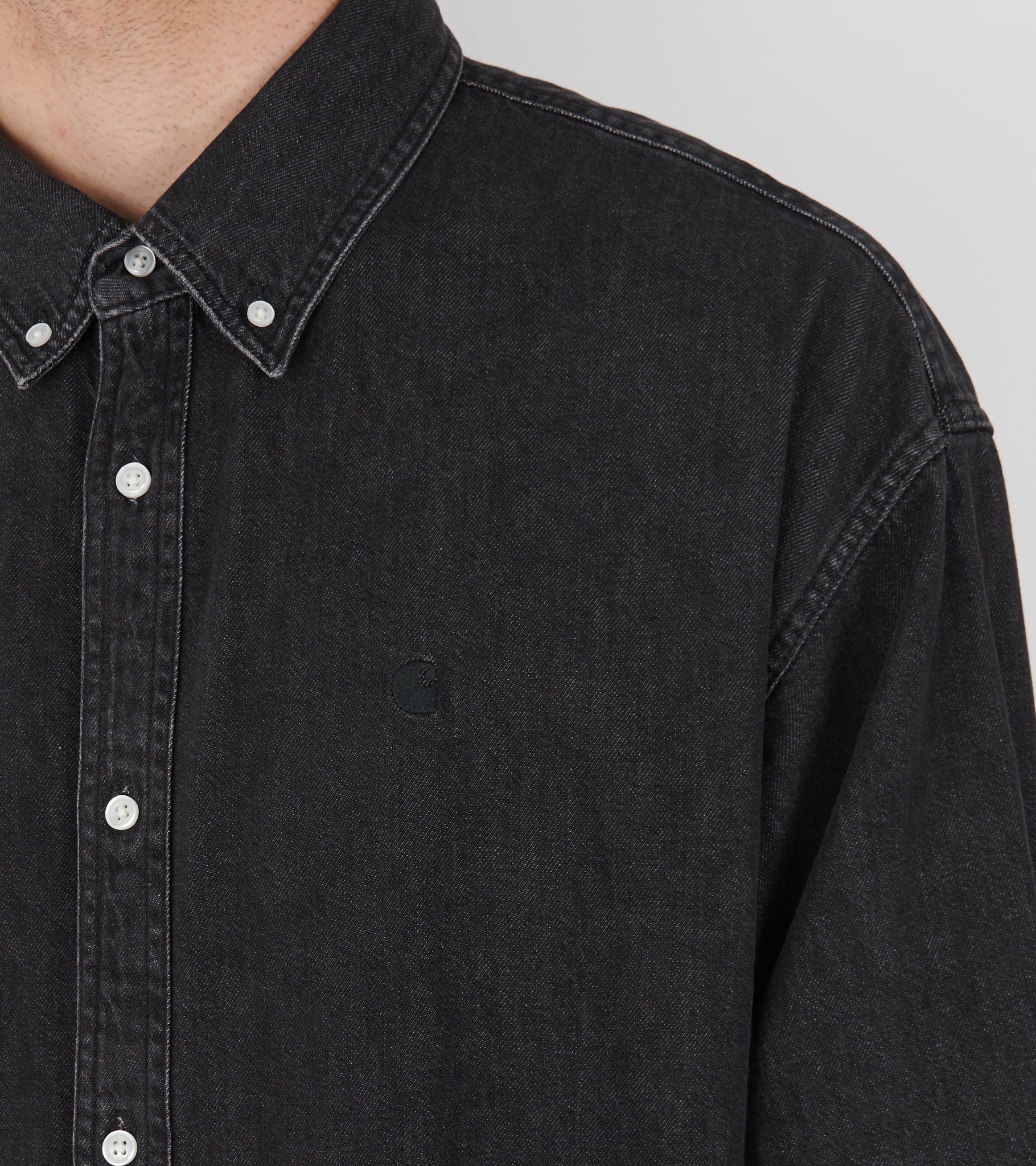 Black stone washed shirt in cotton denim from Carhartt WIP.