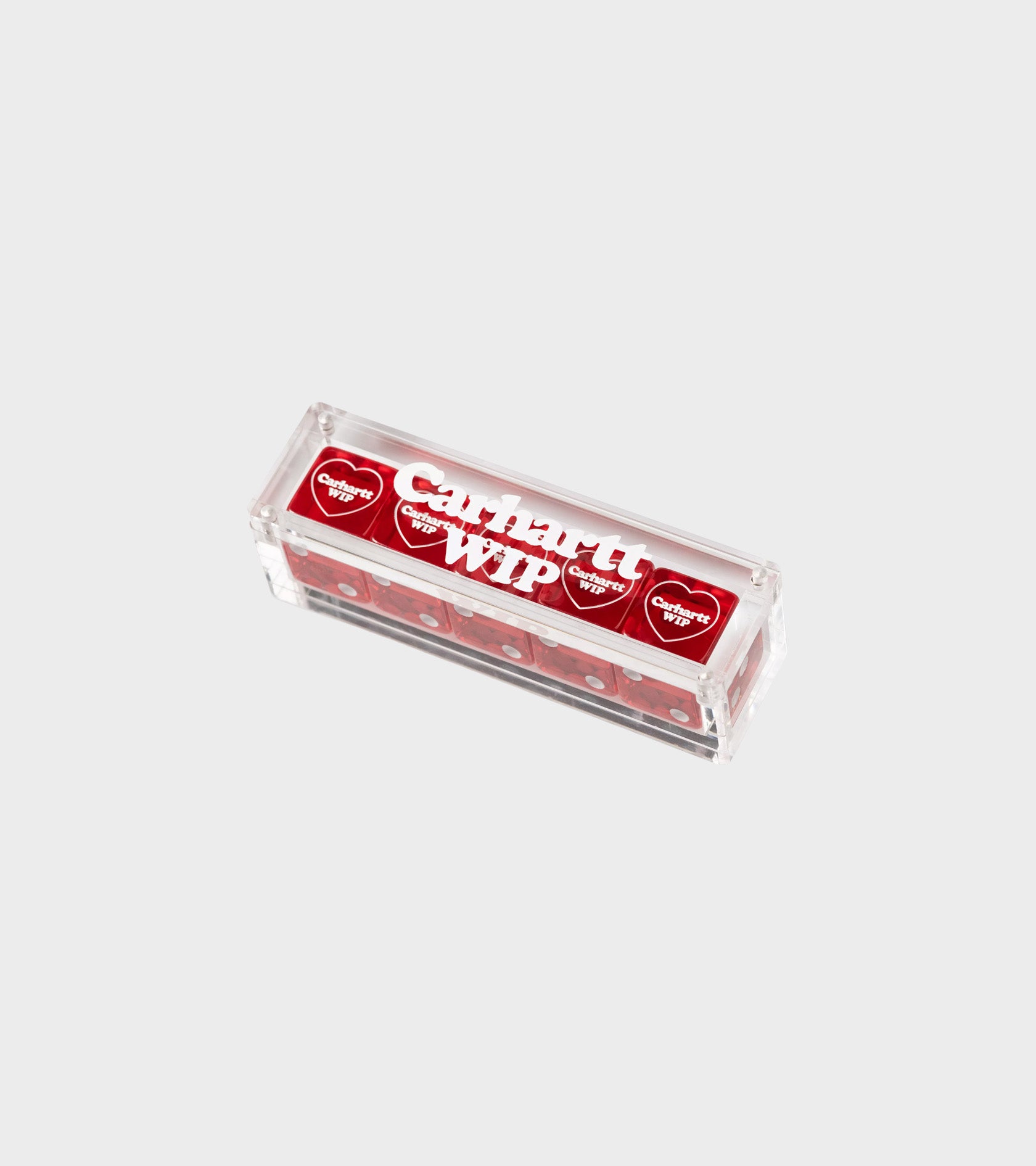 Red dice with logo from Carhartt WIP. Set consists of 5 dice.