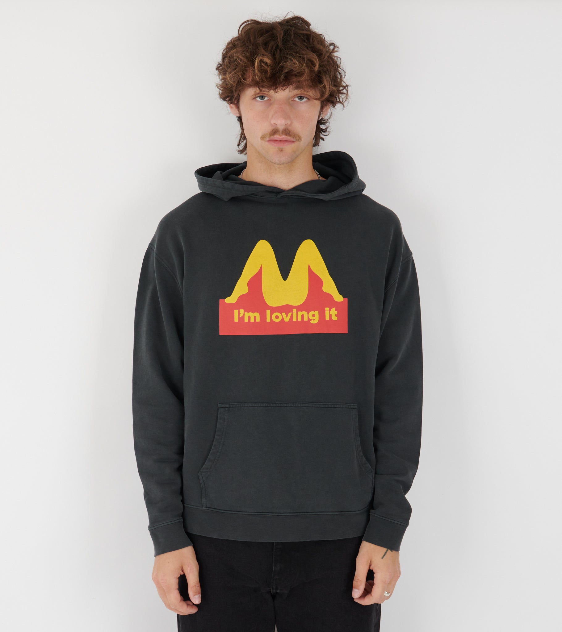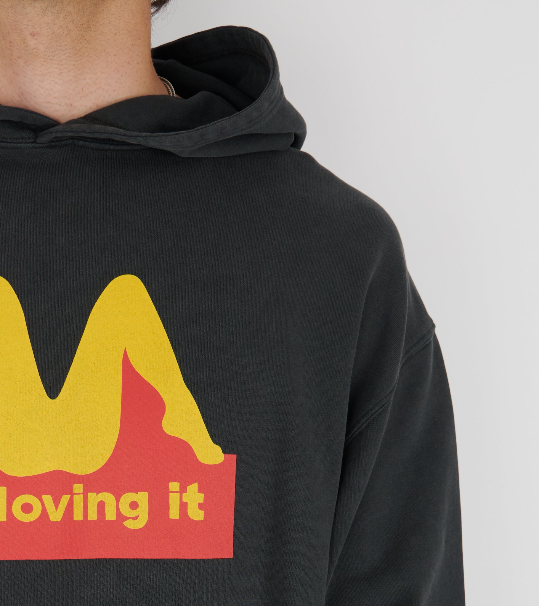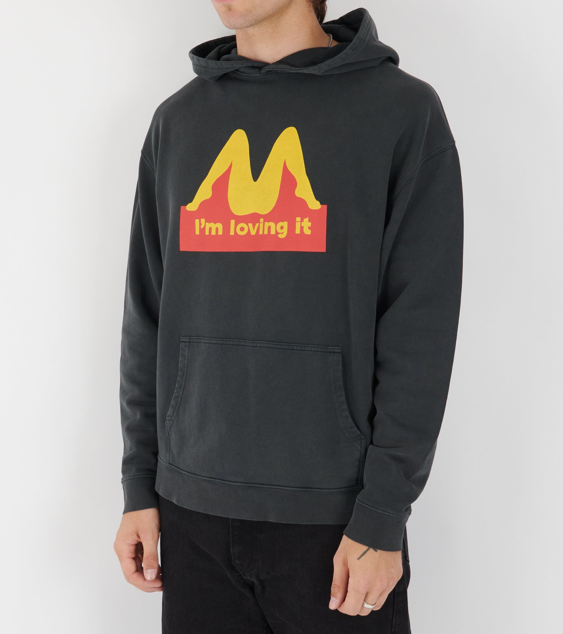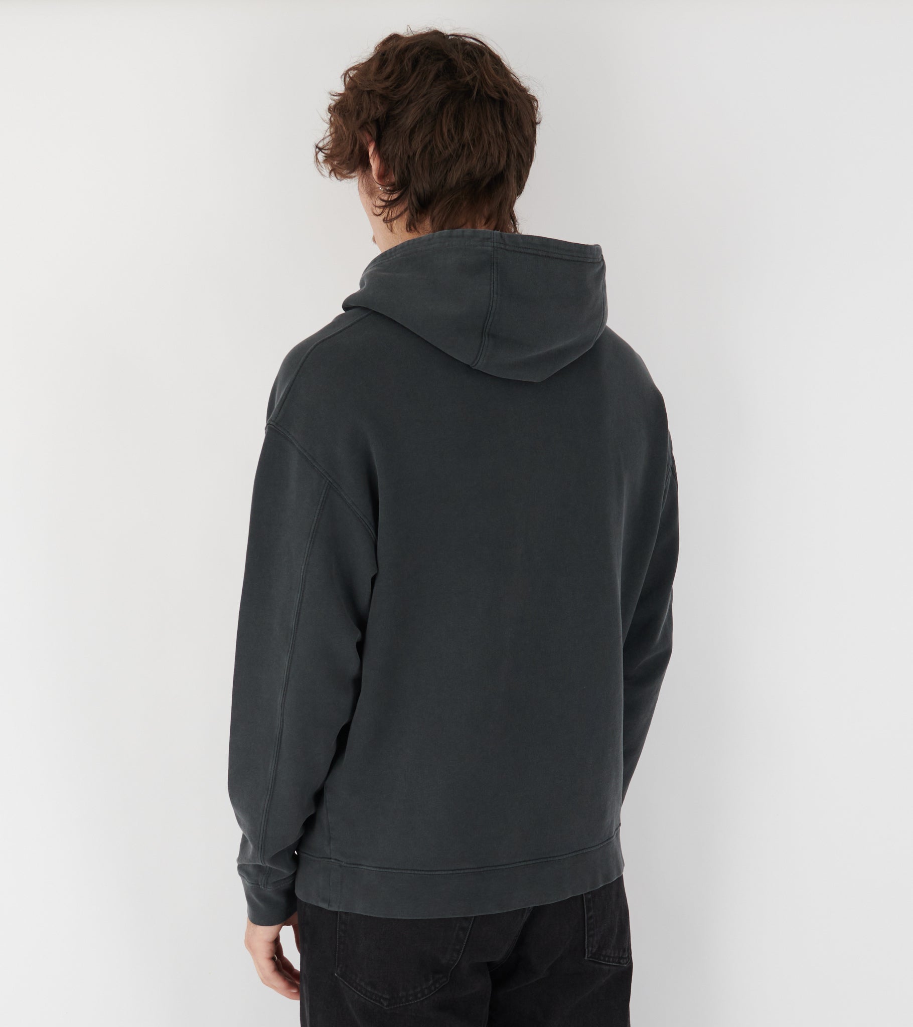 Washed black hoodie in organic cotton from Carne Bollente.