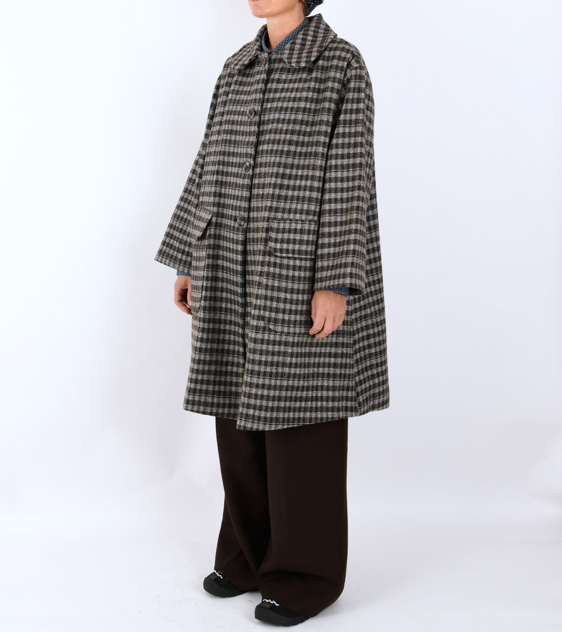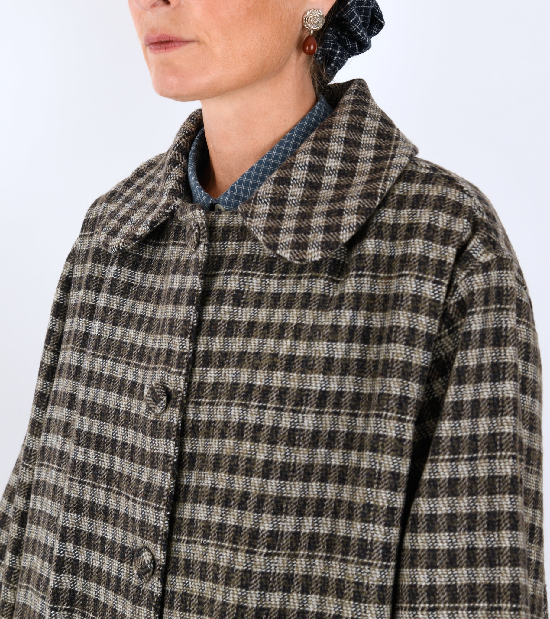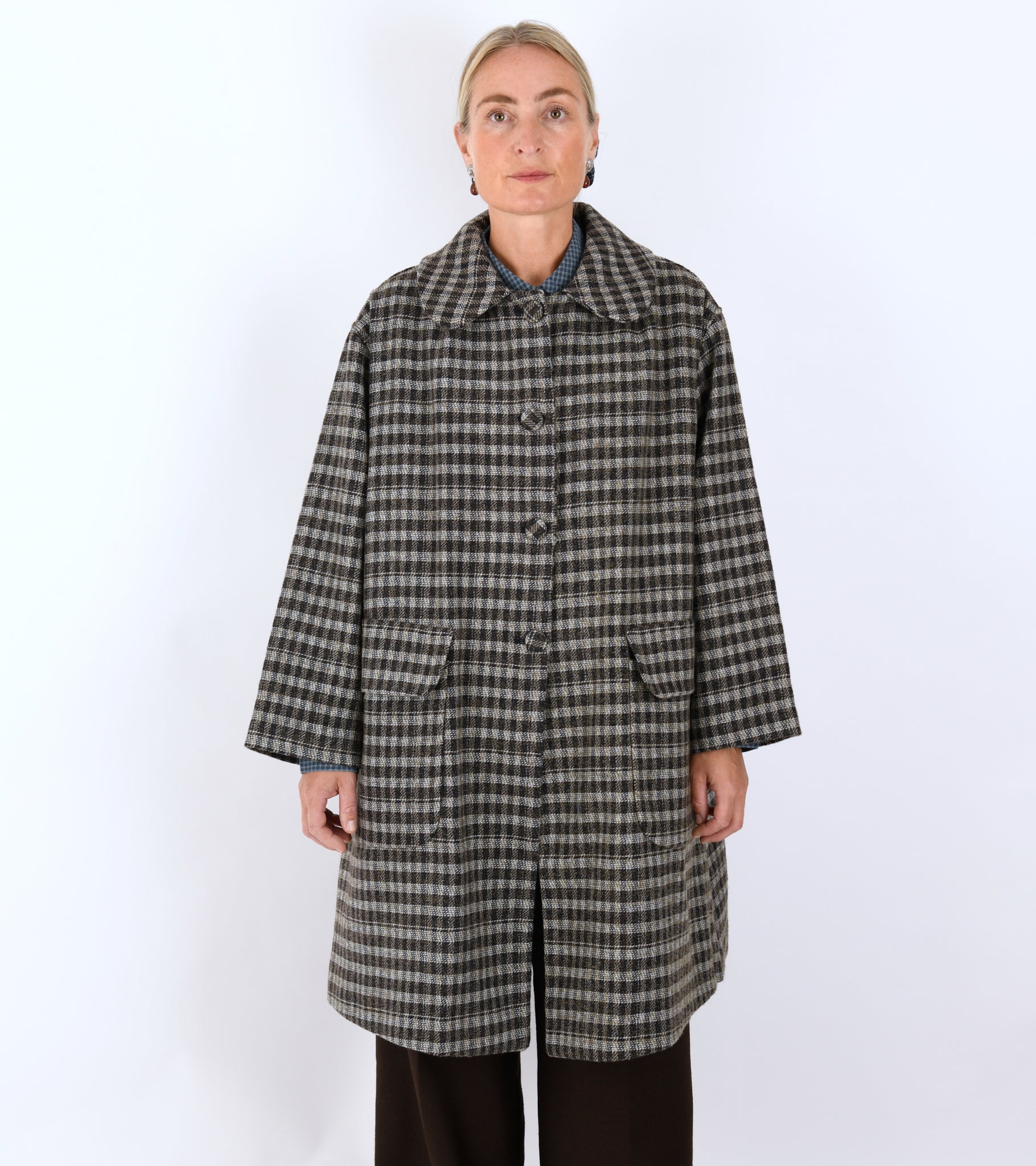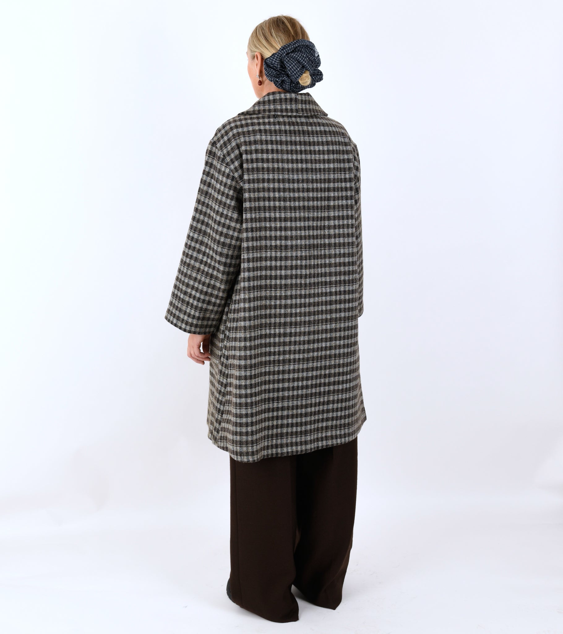 Long checked coat in a wool blend from Mati Mati. The coat is produced from dead stock from the major fashion houses.