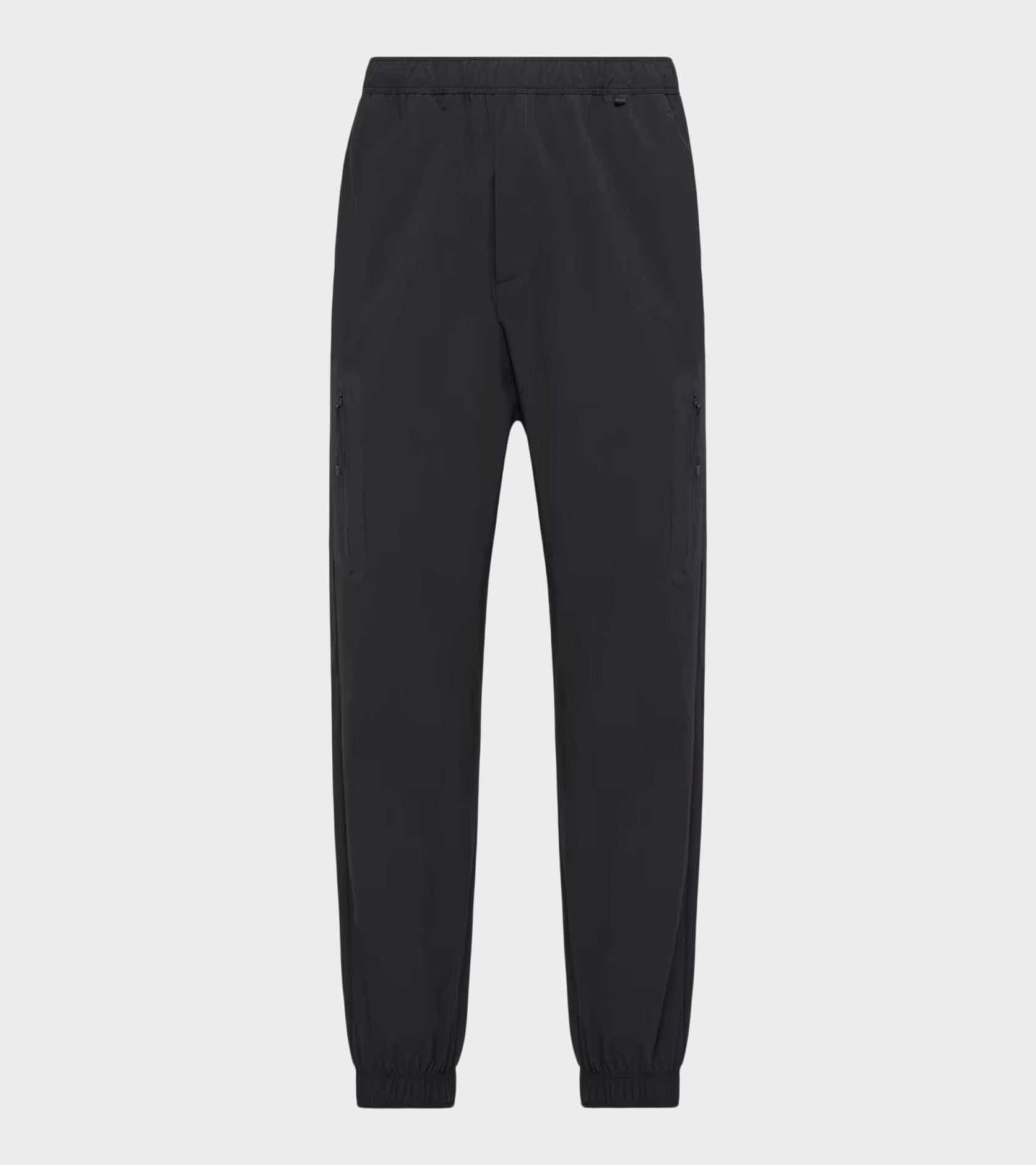 Black track pants in a technical nylon-stretch quality from Moncler.