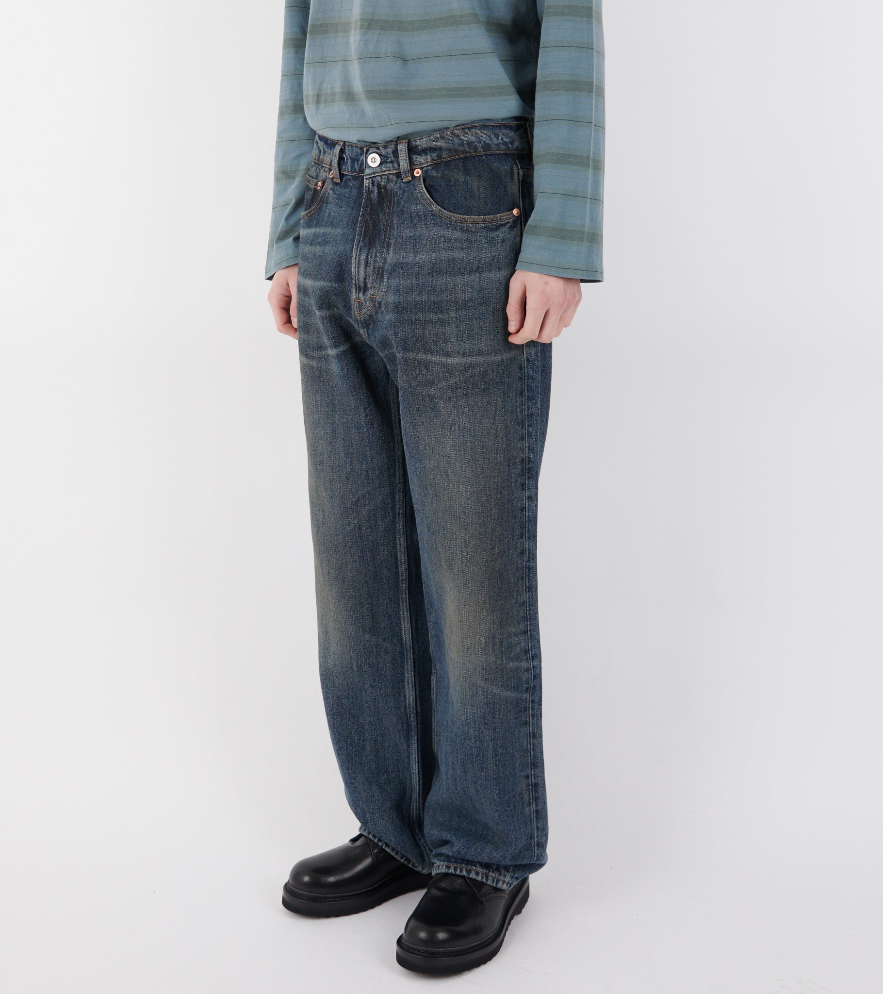 Jeans from Our Legacy. These jeans have belt loops, three slanted pockets on the front and two back pockets. At the top of the back is a rubber logotag.
