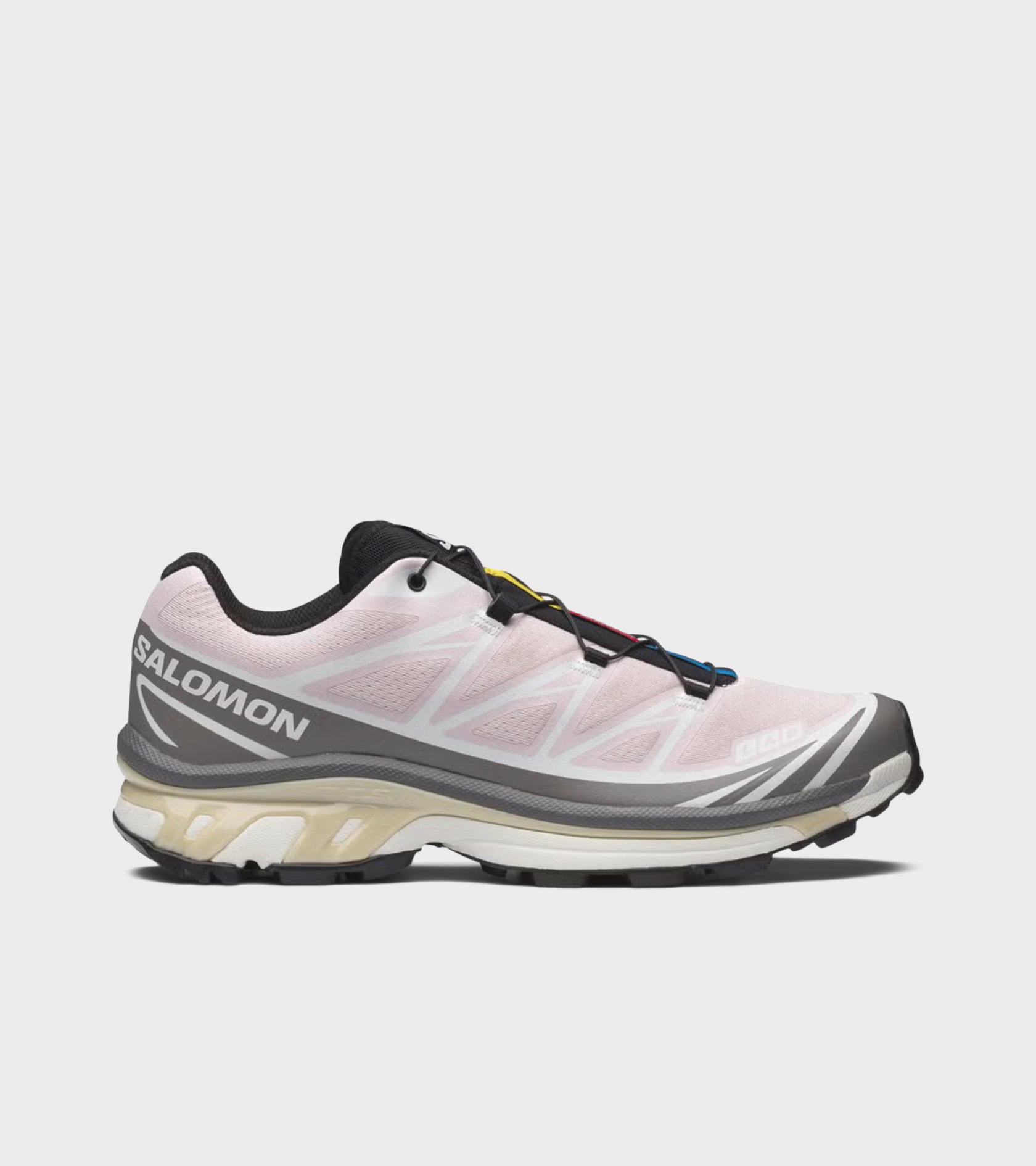 XT-6 from Salomon in a light pink, white and grey color combination.