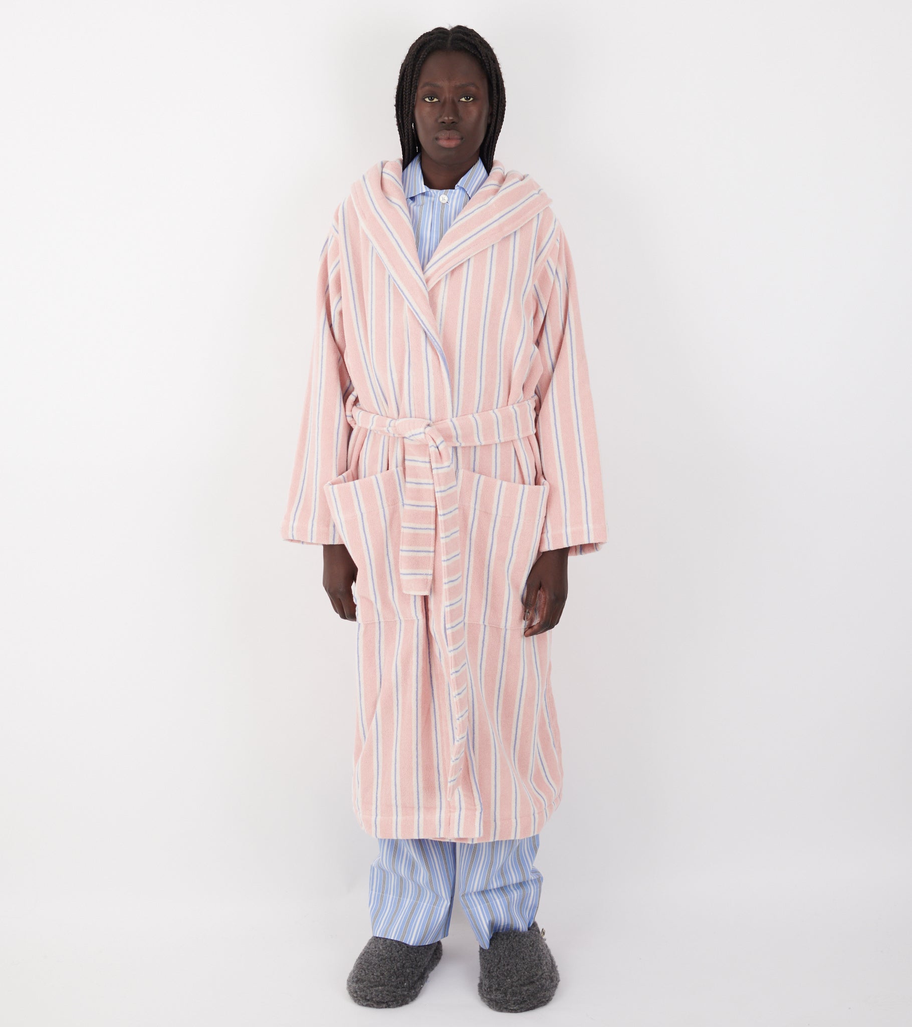Hooded bathrobe in the color 'Candy Stripes' from Tekla.