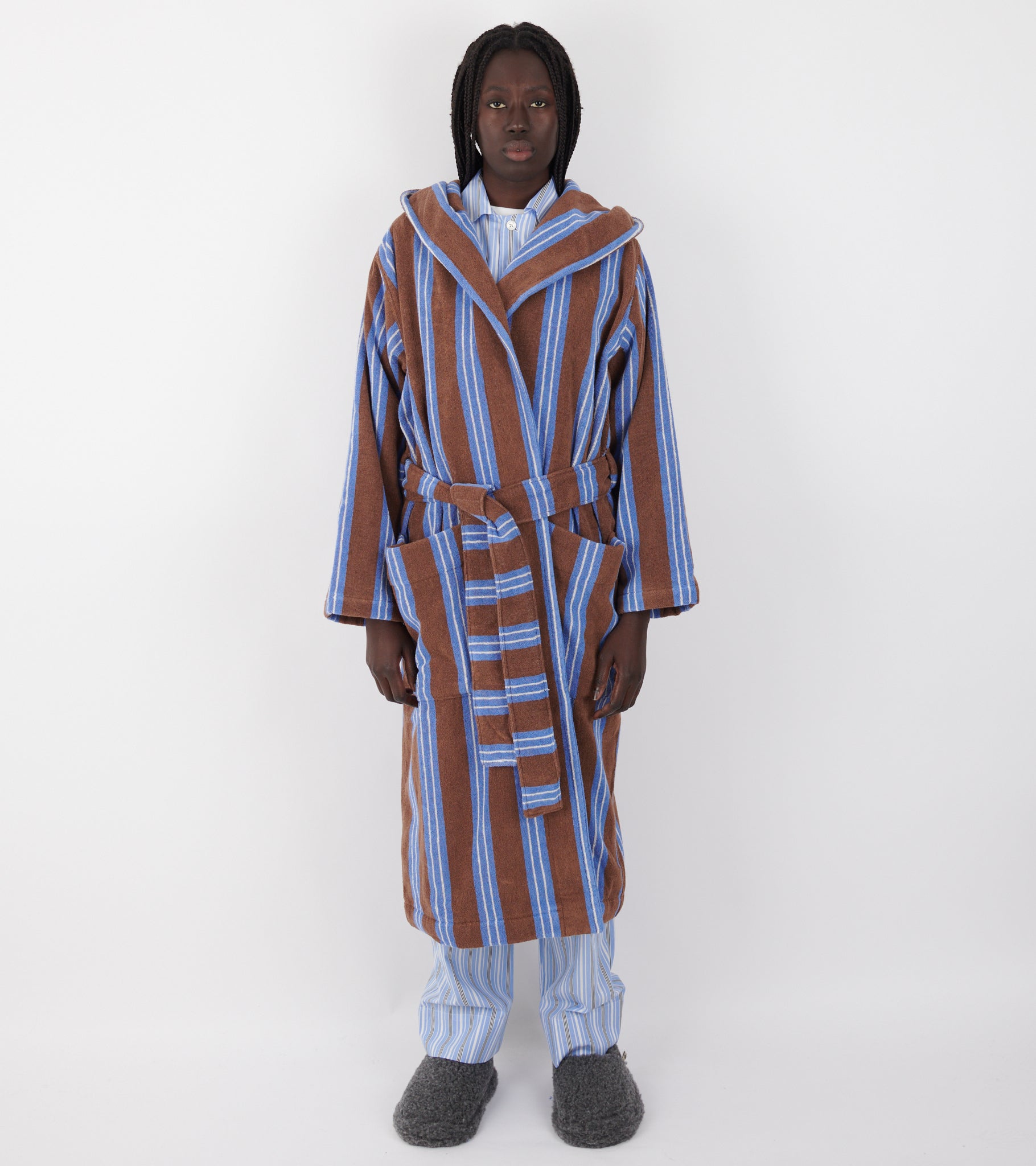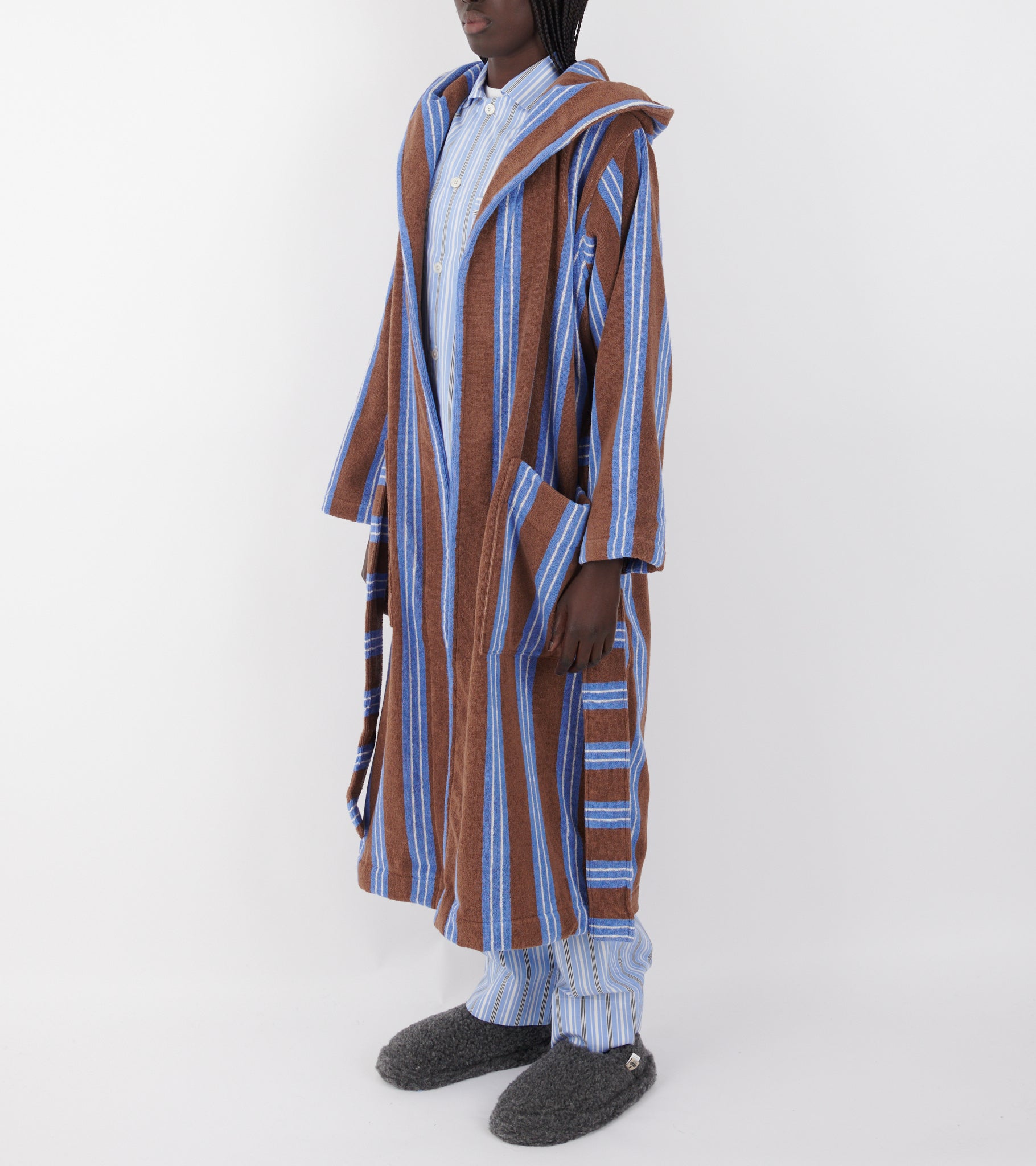 Hooded bathrobe in the color 'Chestnut Stripes' from Tekla.